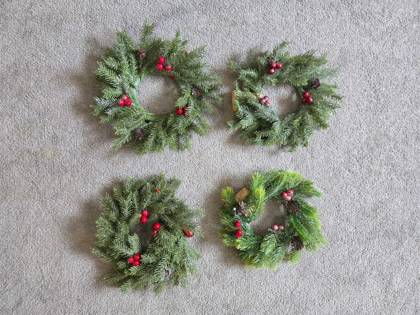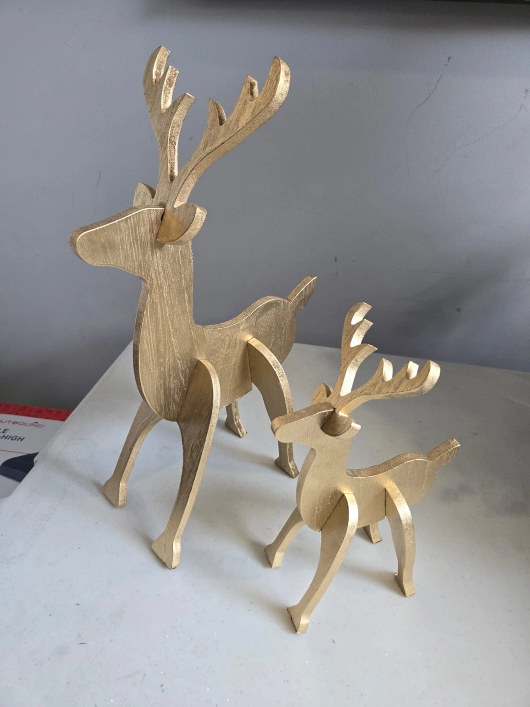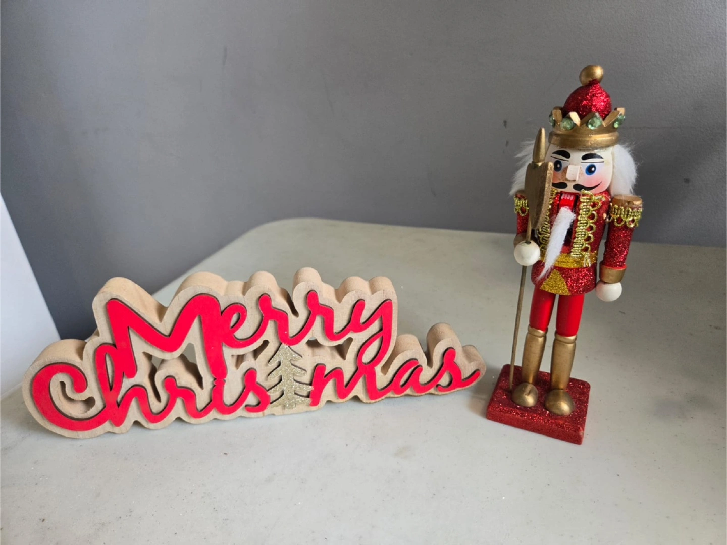 Selling a bundle of Christmas decorations! Included are: - A tinsel Christmas tree with red berry accents - Two golden reindeer that slot together - Four mini wreaths with pinecones and berries - A nutcracker figure - A 'Merry Christmas' sign