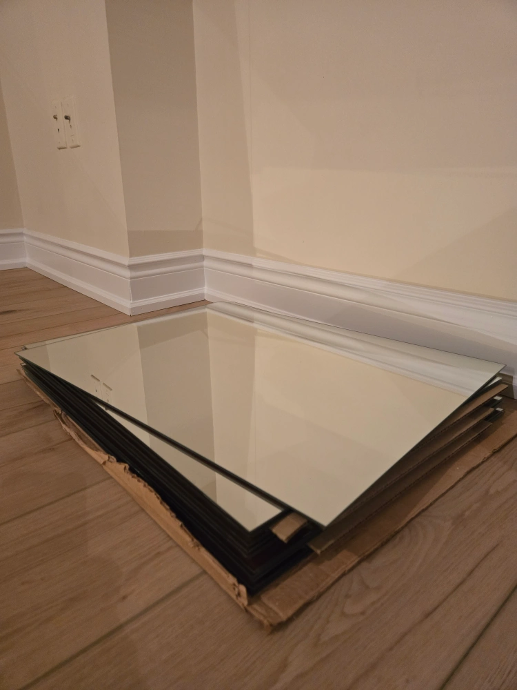 12 PIECES Rectangular Wall Mirror 23 1/2" x 17 3/4" Perfect for creating an approximately 23 ft x 17 ft mirror wall. Pick up from Richmond Hill. Cash only.