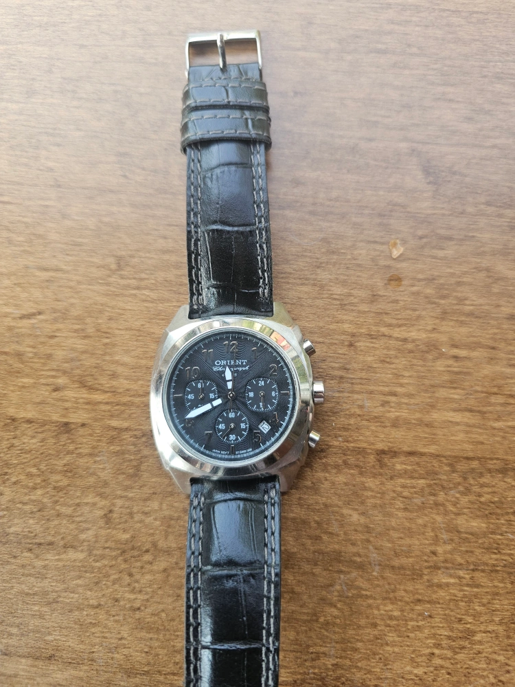 Selling an Orient watch, model ST-GH00-C1 CA. It's water resistant to 5 bar and has a black leather strap. A stylish and reliable timepiece!