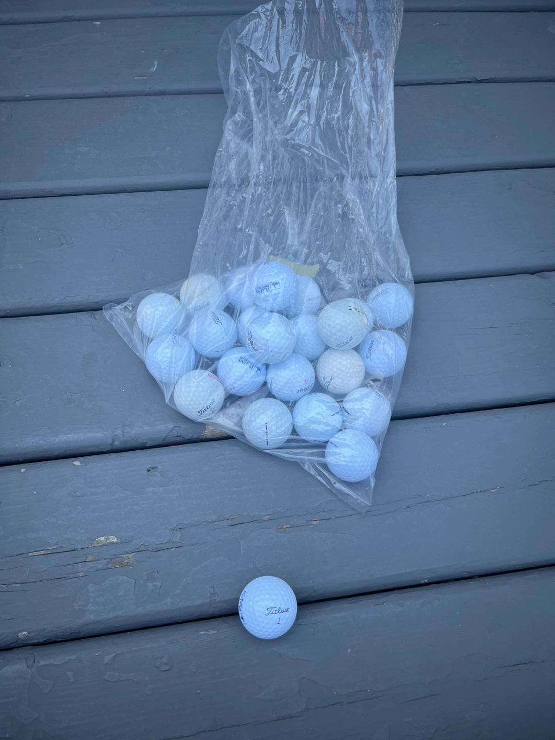 Selling a bag of Titleist golf balls. There are over 20 in the bag and ready for the course.