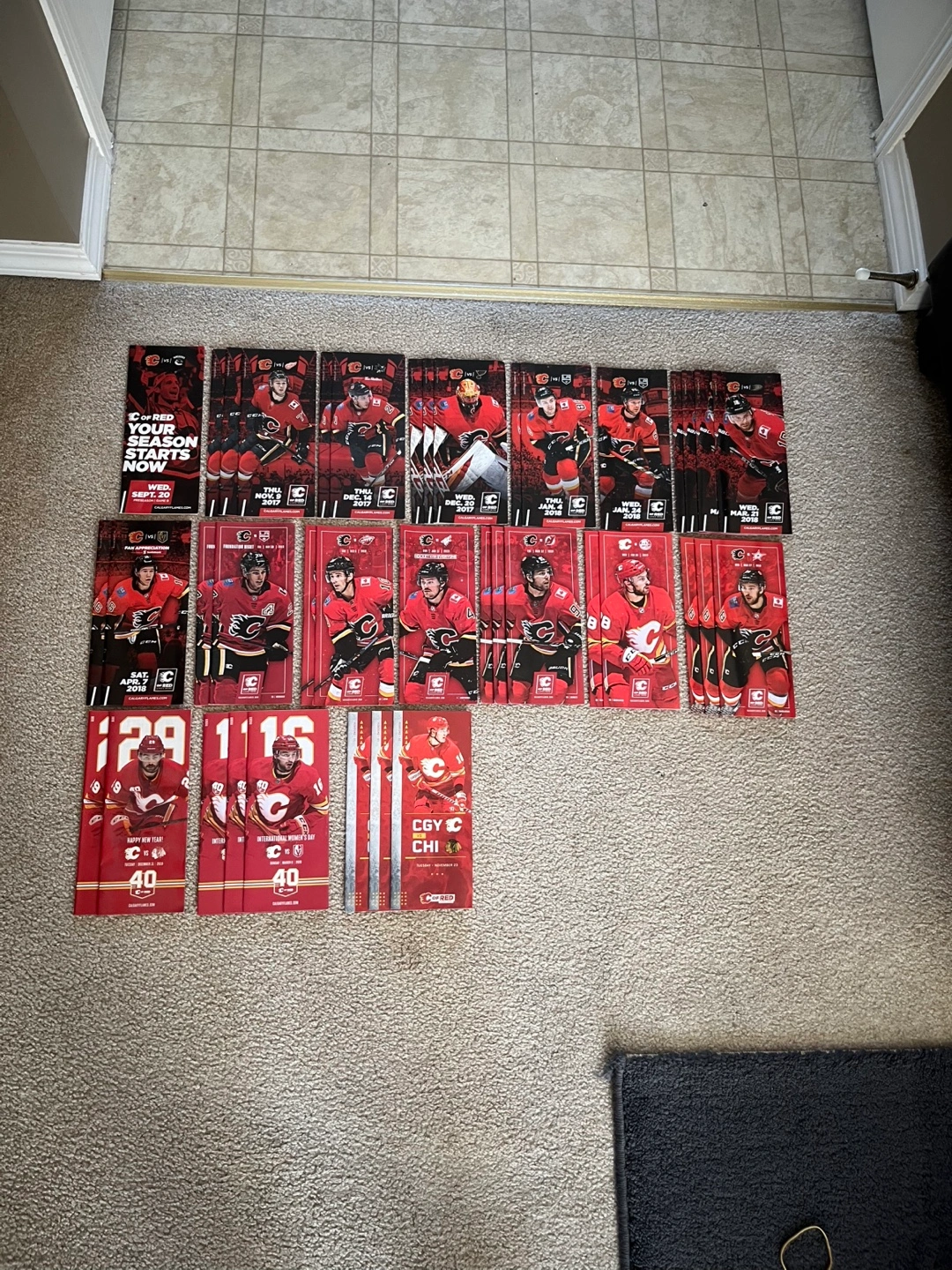 Selling a collection of Calgary Flames game rosters. These are from various games and are great for a Flames fan or collector! $15 for everything.