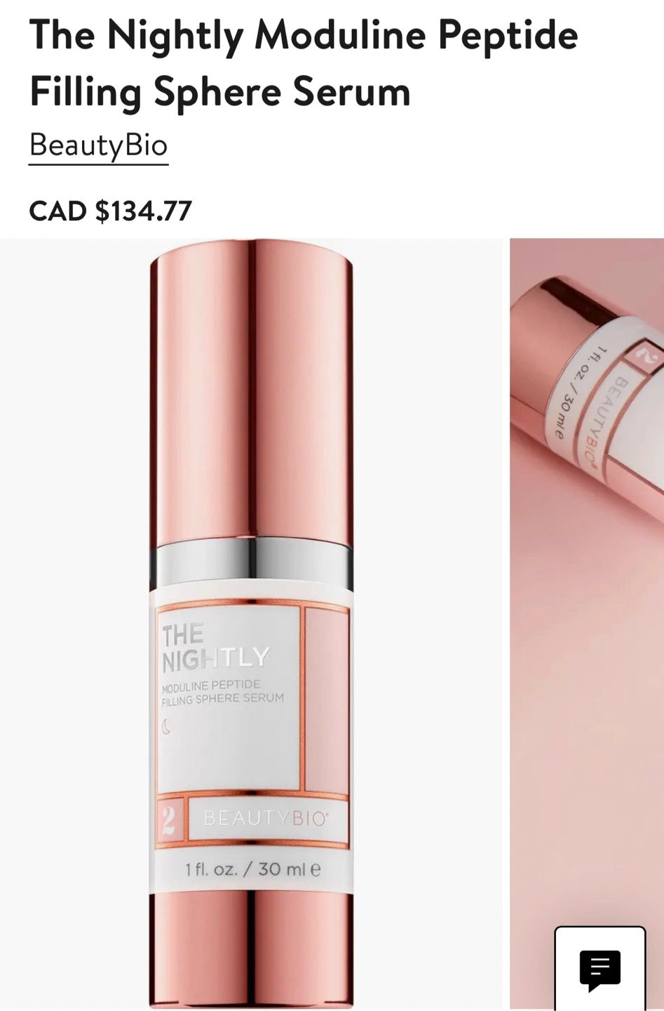 BeautyBio The Nightly Moduline Peptide Filling Sphere Serum. 1 fl. oz / 30 ml e serum. This serum aims to reduce the appearance of fine lines and wrinkles, and improve skin hydration and smoothness. Originally price $134.77! New