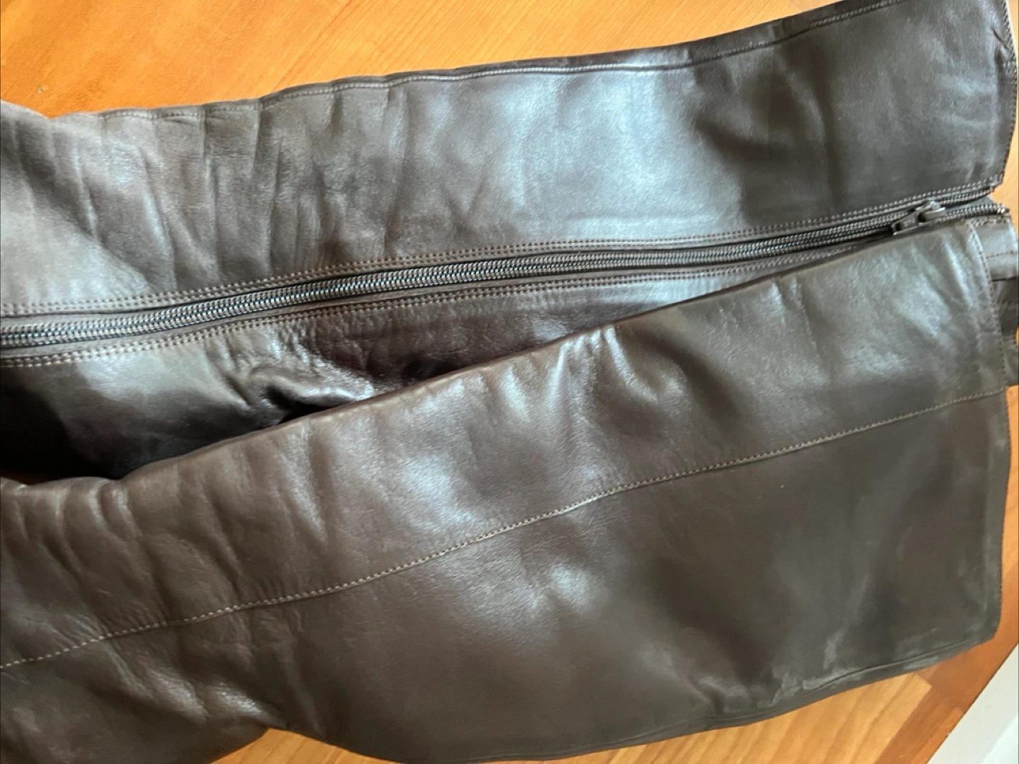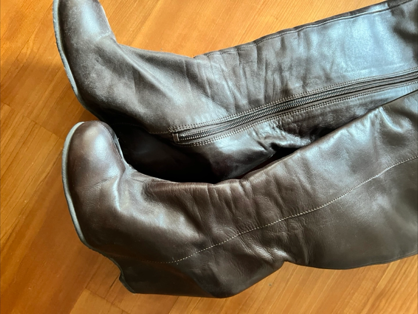 Selling a pair of brown leather knee-high wedge boots. They're a size 7 and feature a zipper closure. Perfect for adding a bit of height and style to your outfit!