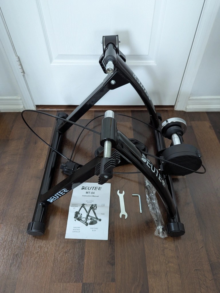 Get ready to elevate your indoor cycling experience with this new Deuter MT-04 bike trainer, designed to provide a realistic road feel from the comfort of your home. This trainer is brand new and ready for many kilometers. This bike trainer offers a smooth and quiet ride, perfect for those early morning or late-night training sessions. Its sturdy frame accommodates a wide range of bike sizes, making it a versatile addition to any cyclist's gear. This bike trainer is your ticket to maintaining your fitness without braving the rain. Cost $122 before taxes. If the add is on, it's available. Pick up near the intersection of Kipling and Eglinton.