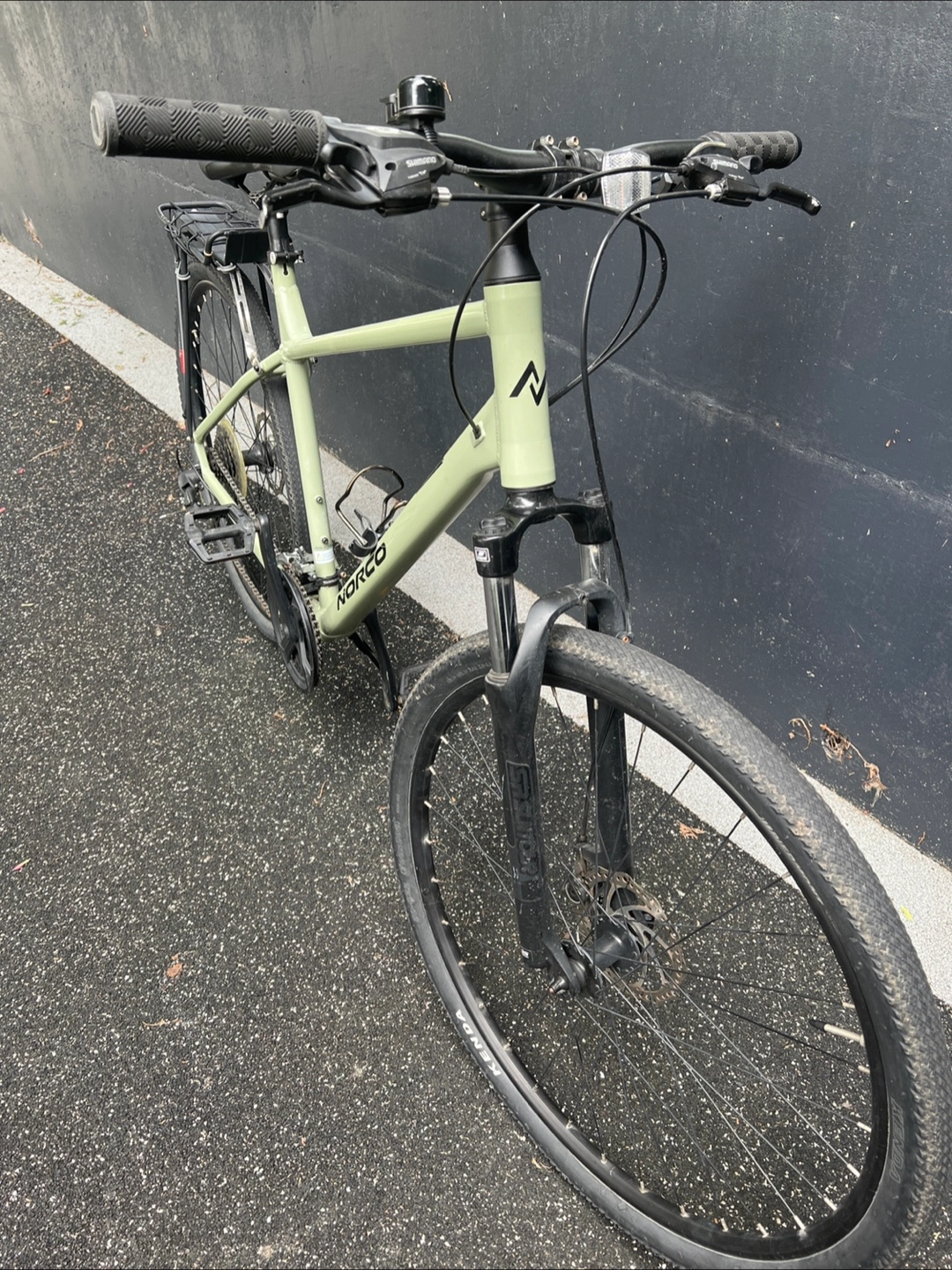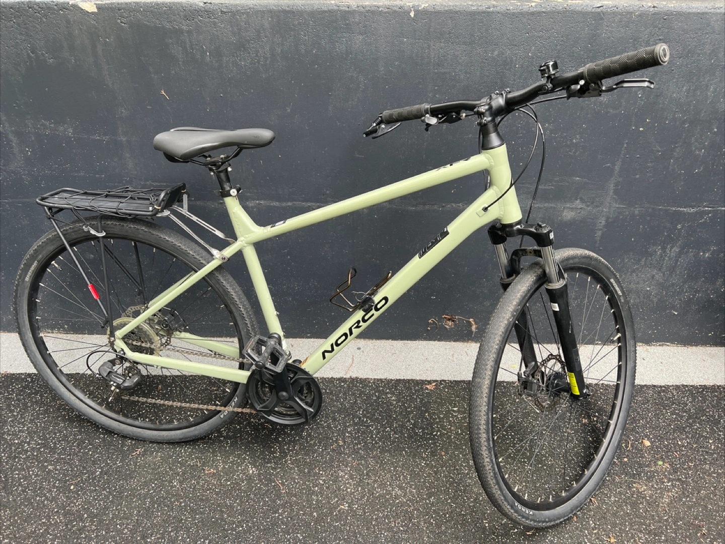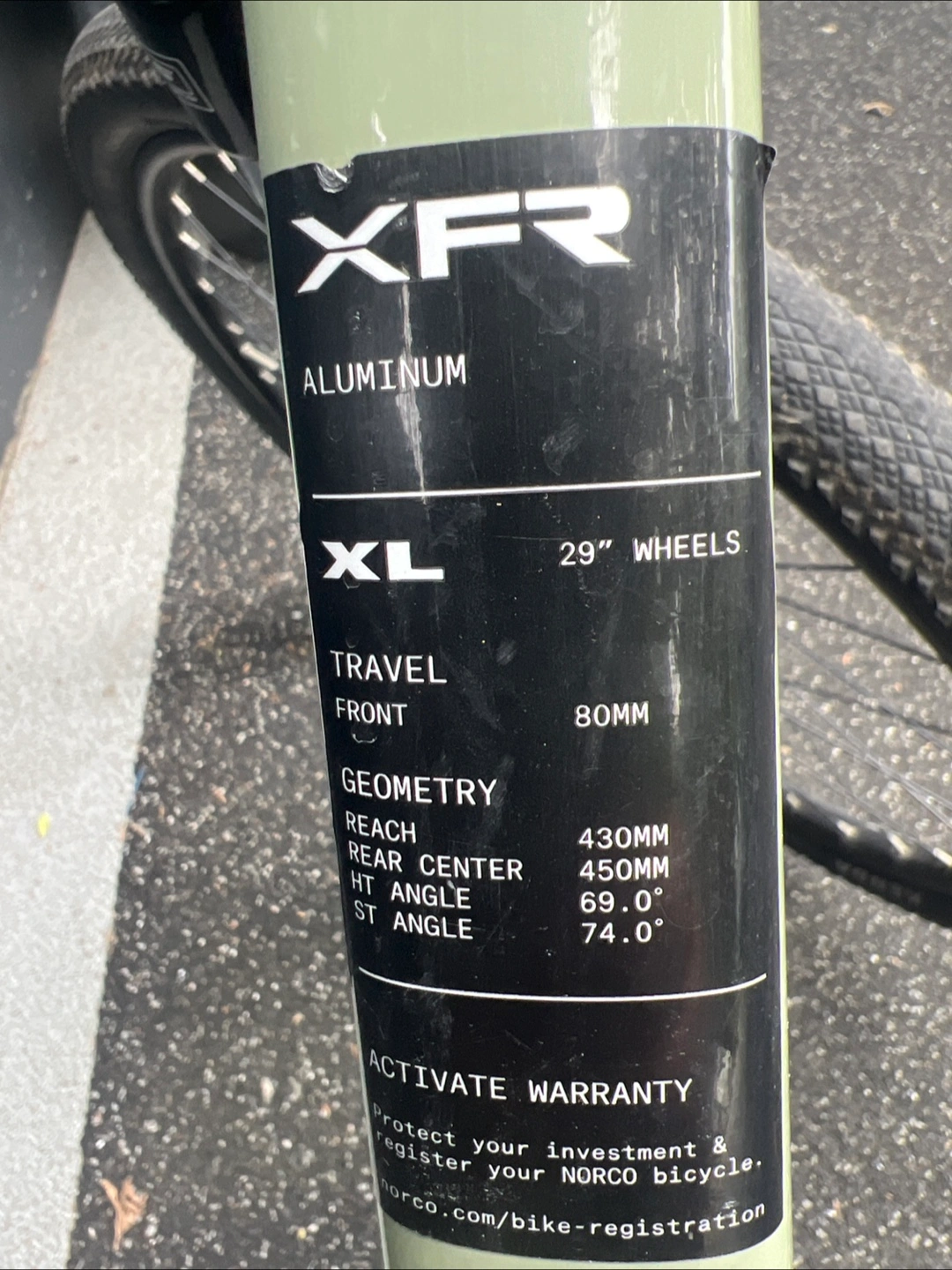 Selling a Norco XFR hybrid bike with an aluminum frame. It's an XL size and has 29" wheels. purchased new May 2013