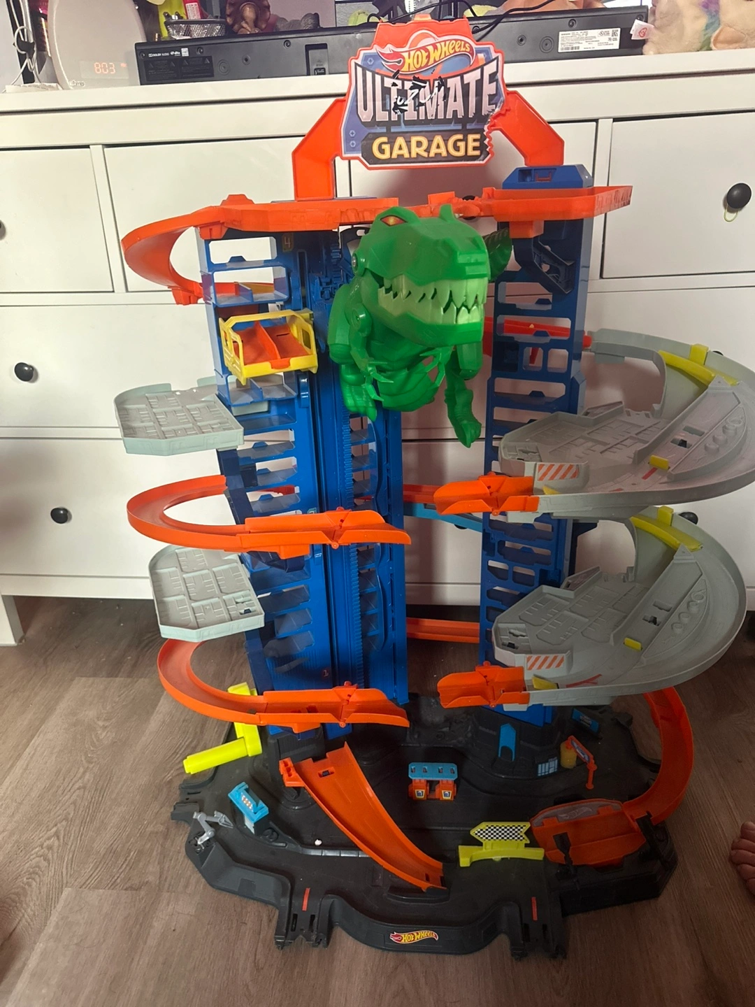 Selling a Hot Wheels Ultimate Garage playset! It's in great shape and ready for a new home. This set includes multiple levels, a car lift, and even a chomping dinosaur to add to the fun. Perfect for any young car enthusiast! Selling for 45.00 Pick up in Milton/Mississauga