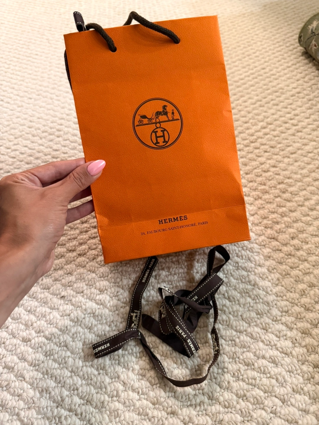 Selling an Hermès gift bag, perfect for adding a touch of luxury to any gift! It comes with the original ribbon as well. The bag is in great condition and ready to be reused or repurposed