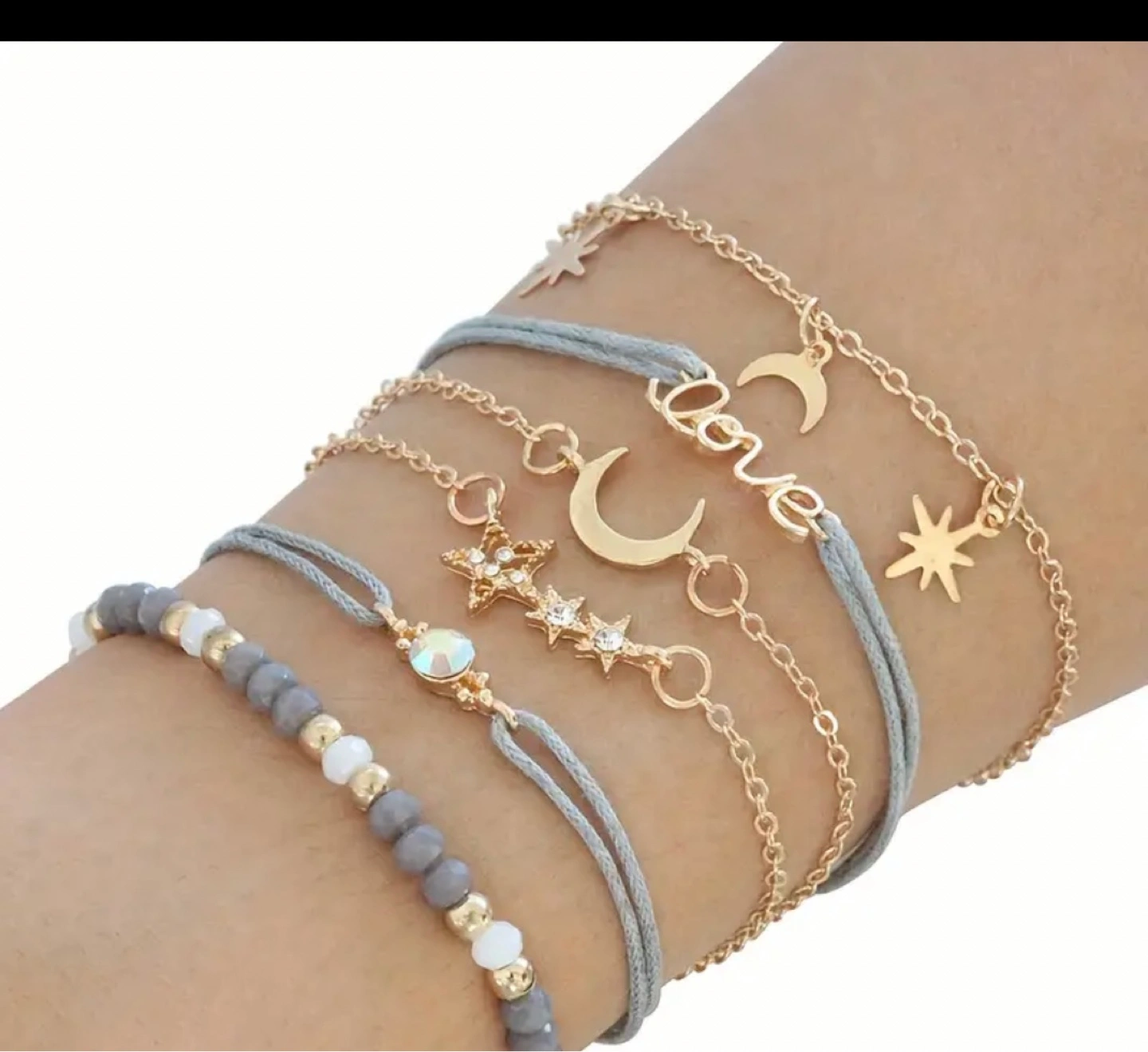A selection of fashionable bracelets and earrings. Perfect for adding a touch of sparkle to any outfit!