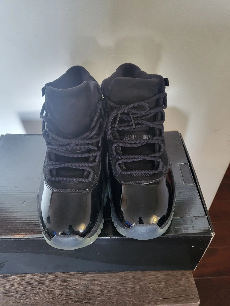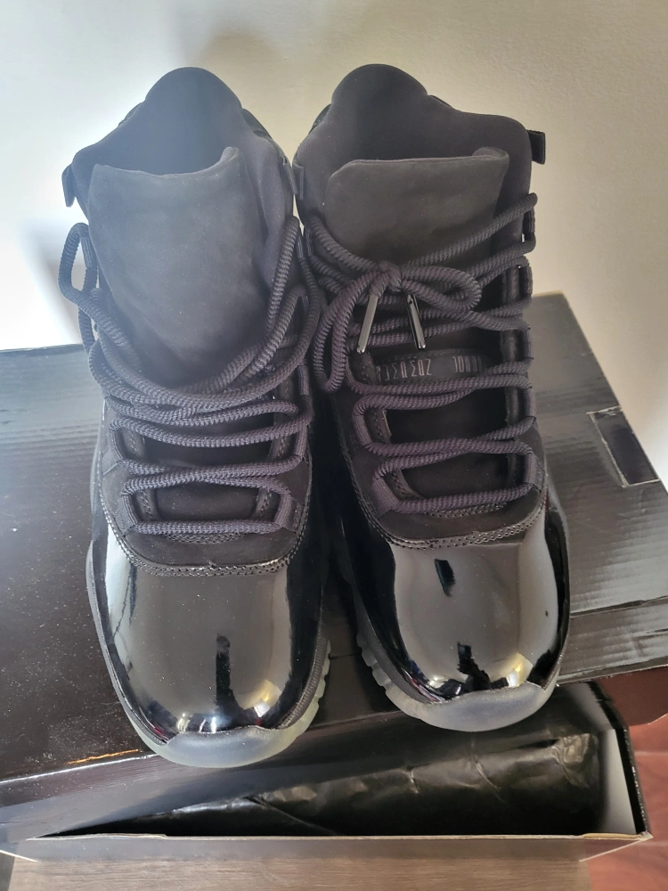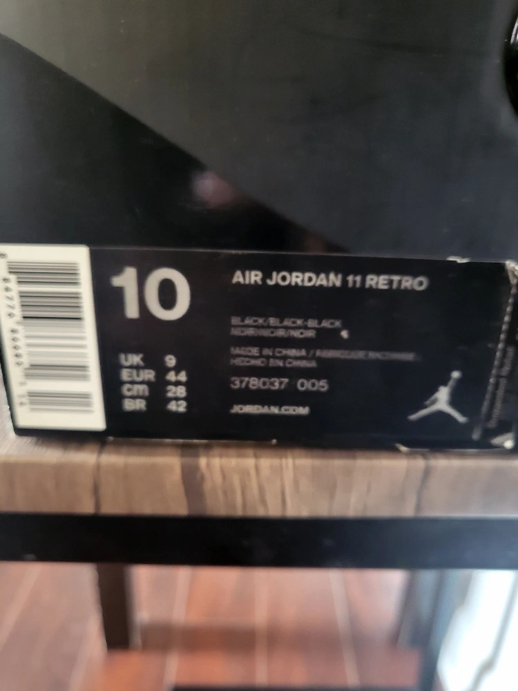 Selling a pair of Air Jordan 11 Retro in black, size 10. Comes with the original box!