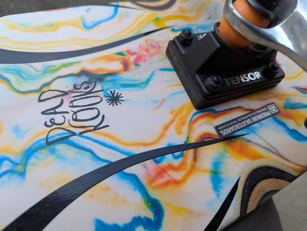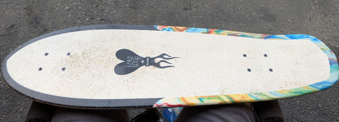 Selling a Dead Kooks X Globe skateboard. It's limited edition collab. It features Tensor trucks and a colourful, swirly design on the deck. Great for cruising around town!