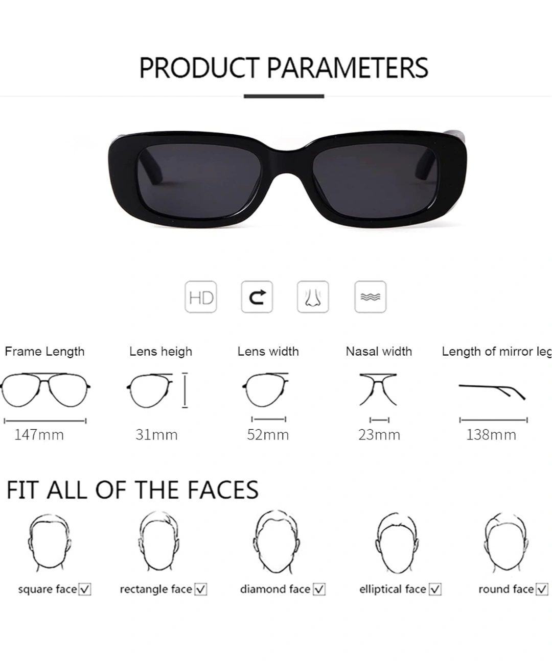 Bring back iconic 90s energy with these narrow rectangular sunglasses, perfect for any outfit — from rave-ready festival looks to everyday casual wear. Unisex, ultra-trendy, and lightweight, these black frame sunglasses offer a bold Y2K edge with full UV400 eye protection. °•○•°•○•°•○•°•○•°•○•°•○•°•○•°○•°•○°•○°•○ 🌟 Price: $20 📦 Condition: Brand New 📍 Pick-Up: Scarborough Golf Club Rd & Lawrence Ave E 🚚 Delivery: Local or Canada Post / UPS available 🔎 Bundle with other accessories — check my listings! °•○•°•○•°•○•°•○•°•○•°•○•°•○•°○•°•○°•○°•○ 🧾 Product Highlights: 🖤 Minimalist Rectangle Design 90s/Y2K-inspired narrow shape Thick temples and sleek silhouette Perfect for both women & men ☀️ UV400 Rated Lenses Blocks 100% UVA & UVB rays Protects eyes while keeping your style sharp 🔩 High-Quality Build Durable plastic frame One-piece molded nose pad Lightweight (only 34g) for long-term comfort 📏 Dimensions: Lens Width: 52mm (2.05”) Lens Height: 31mm (1.22”) Nose Bridge: 23mm (0.91”) Temple Length: 138mm (5.43”) Frame Width: ~147mm (5.79”) 🧼 Includes: 1x Sunglasses 🎯 Fits All Face Shapes: Square, Oval, Round, Diamond, Elliptical ✅