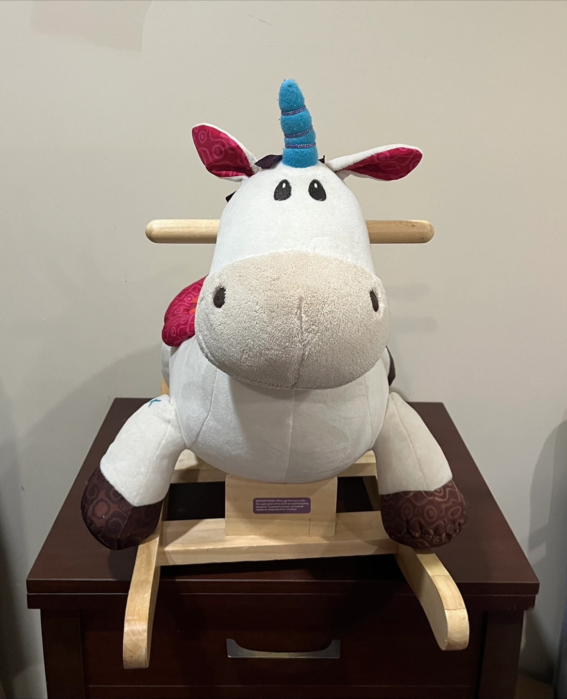 Looking to sell this adorable Rockabye Unicorn Rocker! It's in great condition and ready for a new home. Perfect for little ones who love to rock and play!