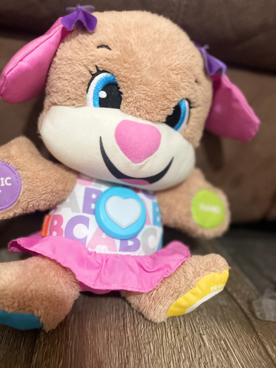 Selling a gently used Fisher-Price Laugh & Learn Love to Play Sis plush toy! This interactive toy is perfect for little ones who are learning and exploring. It features a variety of songs, sounds, and phrases to help develop your child's cognitive and motor skills. It is in great condition and ready for a new home!