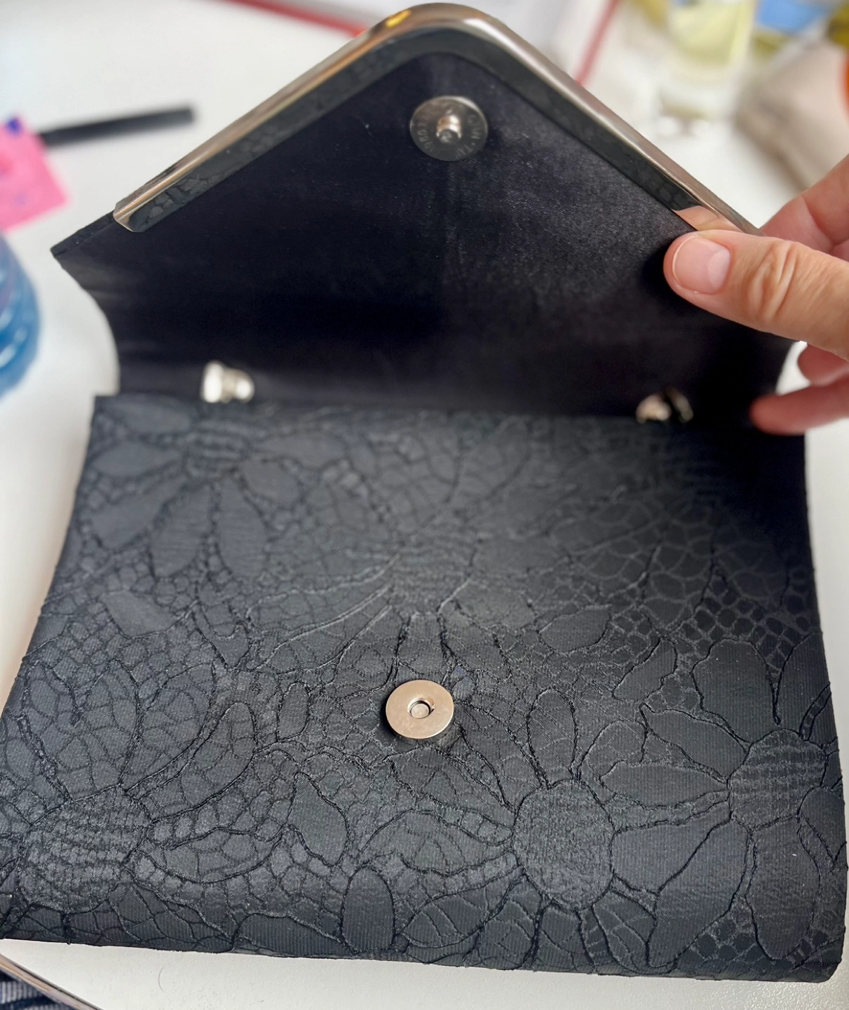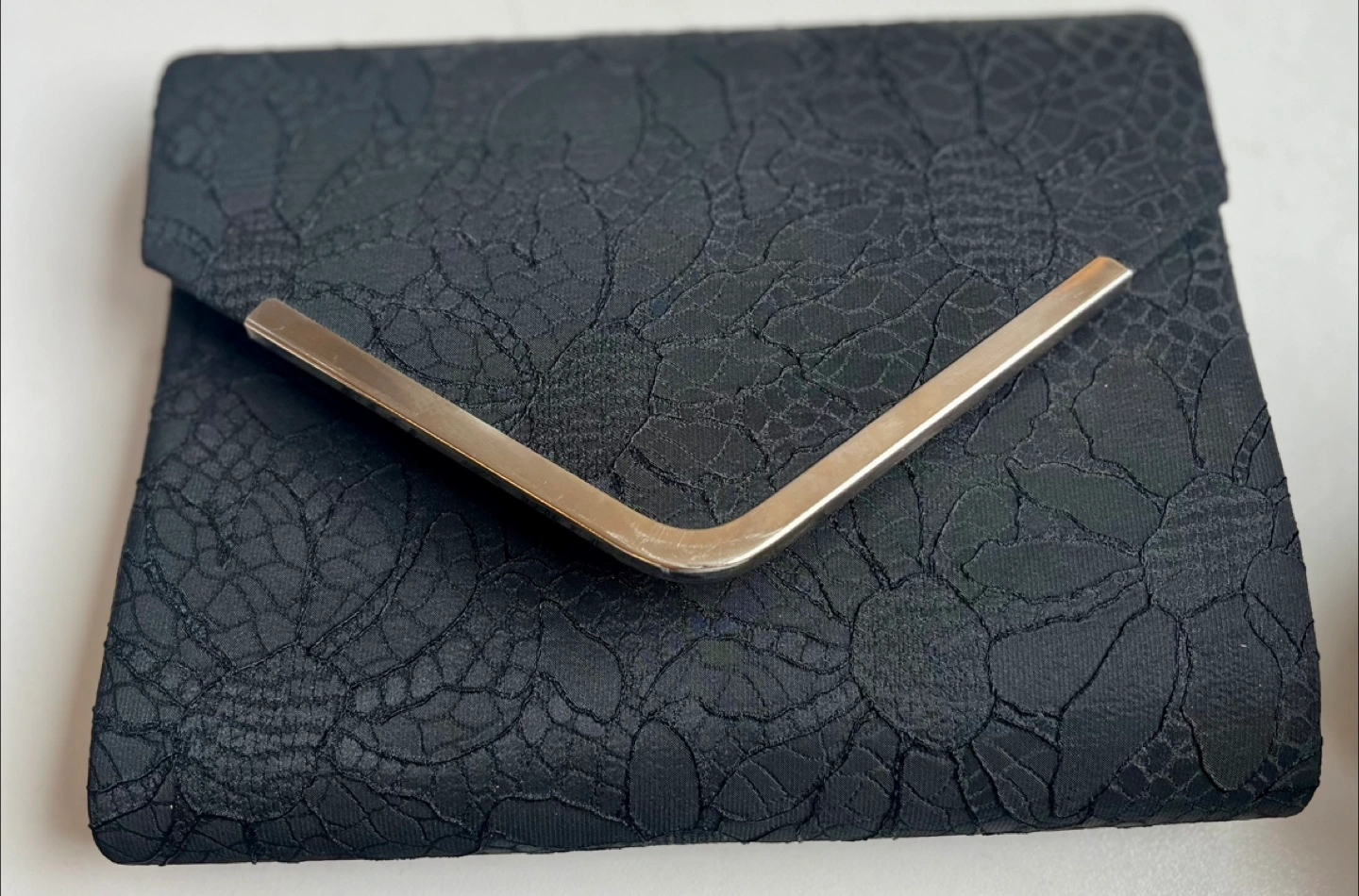 Add a touch of vintage elegance to your ensemble with this used vintage black lace clutch featuring a chic silver clasp. This stylish clutch is perfect for evenings out or special occasions, offering a compact yet functional design to carry your essentials. Despite being pre-loved, it remains in good condition, ready to complement your wardrobe with its timeless charm. Pickup downtown and cash only!!! If the ad is still up, yes, it's still available!