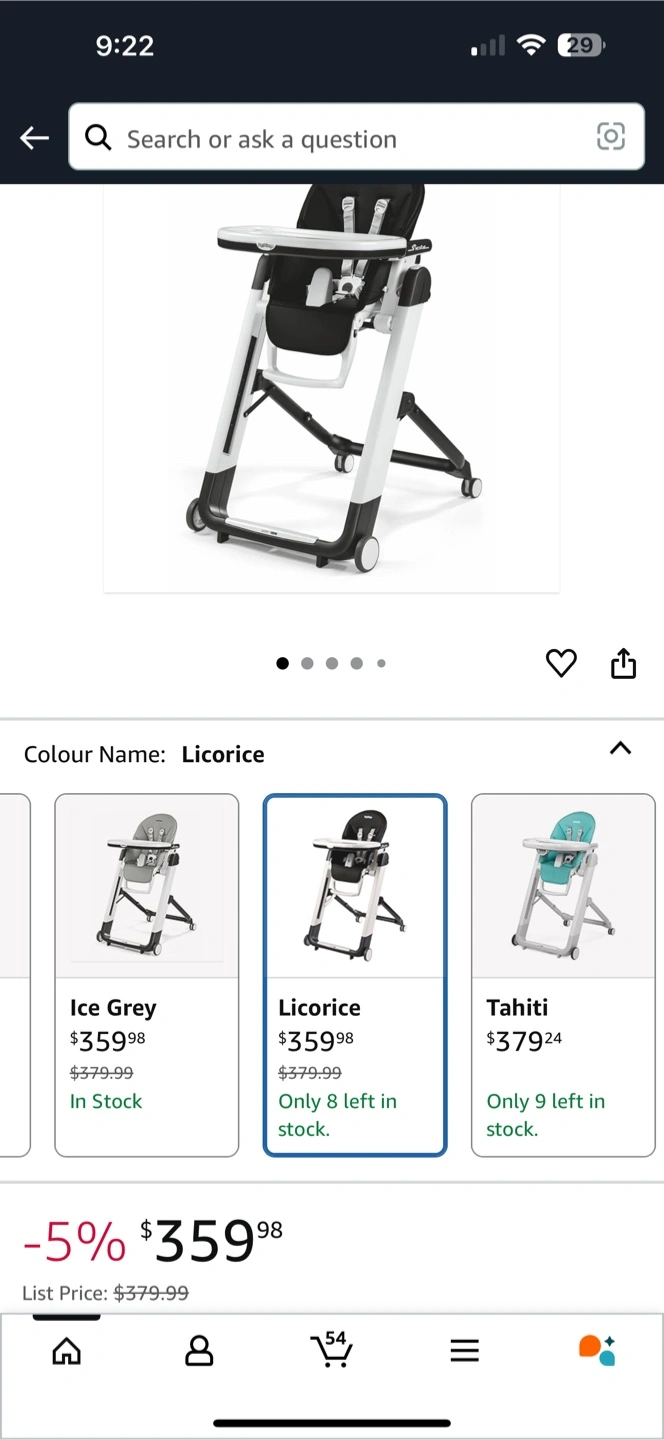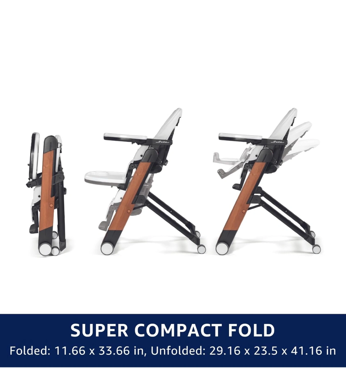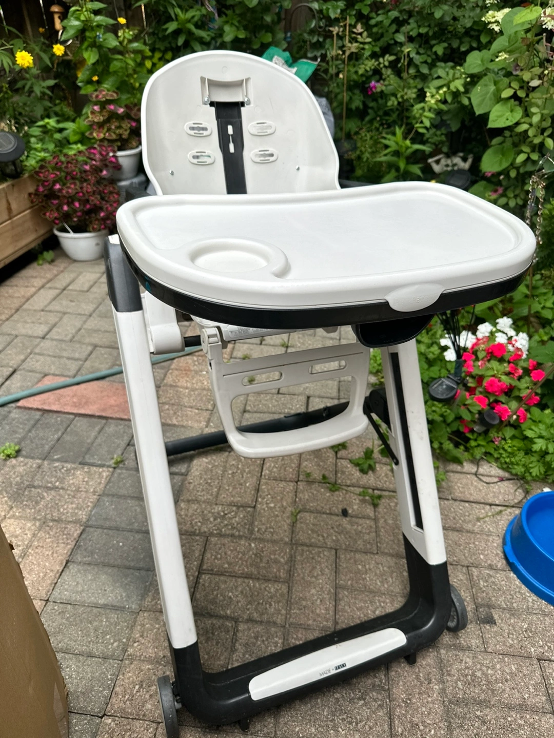 Comes with a black cushions insert! Looking to sell a Sesta 2-in-1 recliner and high chair! It features: - True recline with 5 positions for infant and toddler comfort - Height adjustable with 9 positions to sit baby at the table or down to the floor - 5-point safety harness and passive restraint bar attached to the seat for safety - Double tray for easier cleaning; the top tray is dishwasher safe - Adjustable footrest with 3 positions - Mar-resistant caster wheels to take baby room to room - Mesh storage net on the seat back for baby's belongings It also has a super compact fold for storage. Folded dimensions are 11.66 x 33.66 inches, and unfolded dimensions are 29.16 x 23.5 x 41.16 inches. Comes clean and fully assembled!
