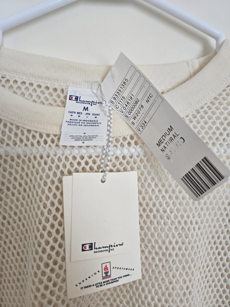 Selling a Champion Rochester long sleeve mesh top in a size medium! It's a natural/cream colour and made of 80% cotton and 20% polyester. Perfect for layering or wearing on its own Brand new never worn