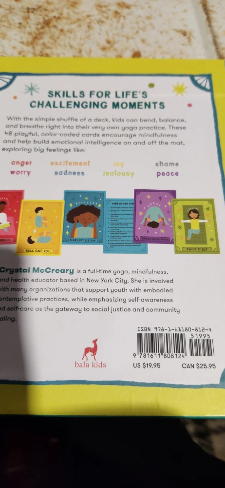 Selling a Little Yogi Deck by Crystal McCreary! It's a set of cards with simple yoga practices to help kids move through big emotions. The deck includes 45 playful, color-coded cards to encourage mindfulness and help build emotional intelligence. Retails for $25.95 CAD