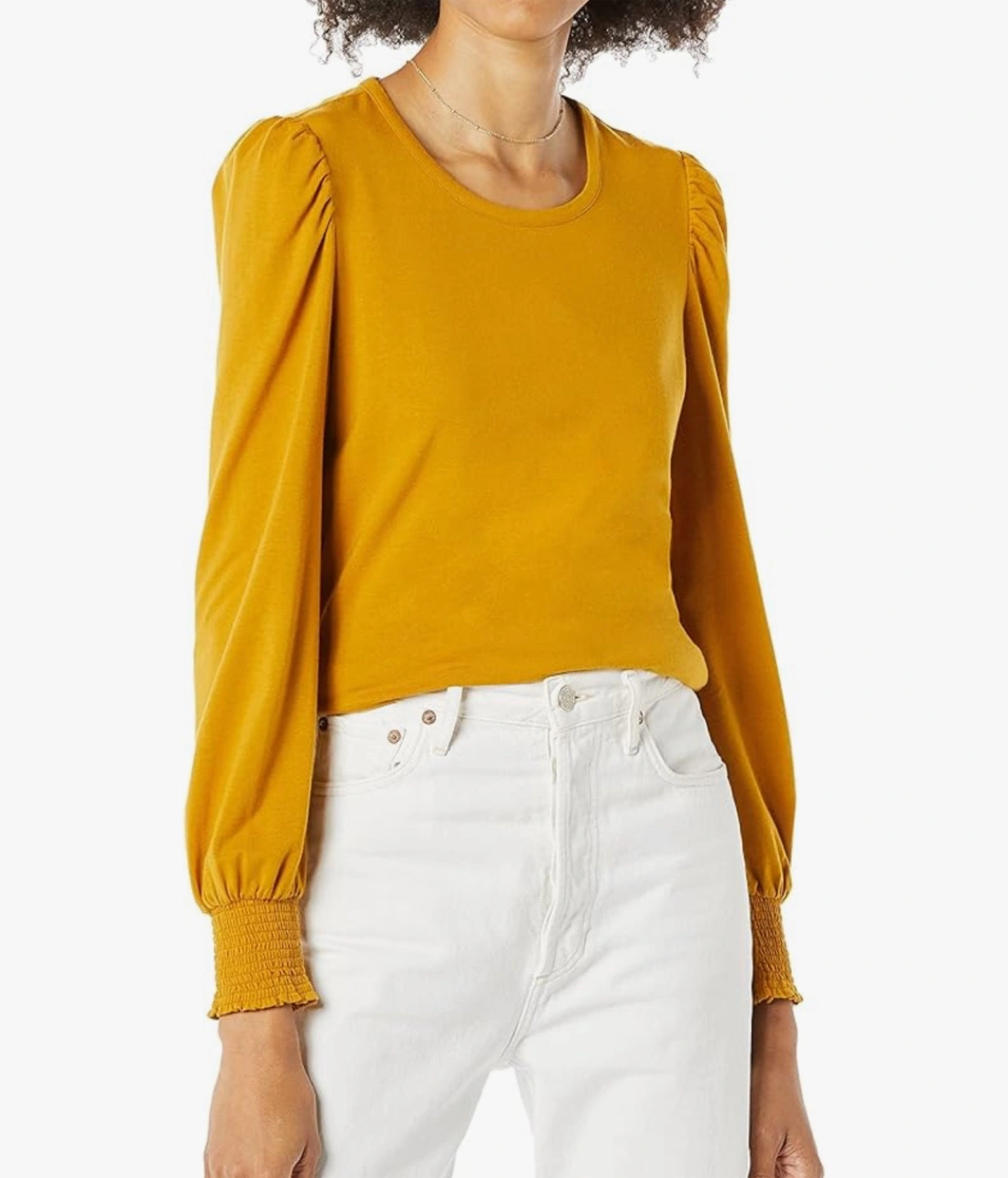 Here's a gold-coloured long sleeve shirt from Amazon Essentials! It's a size medium new with tag. Pick up only.
