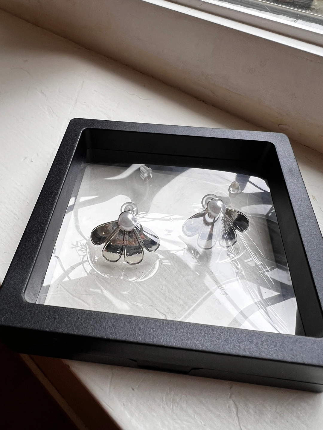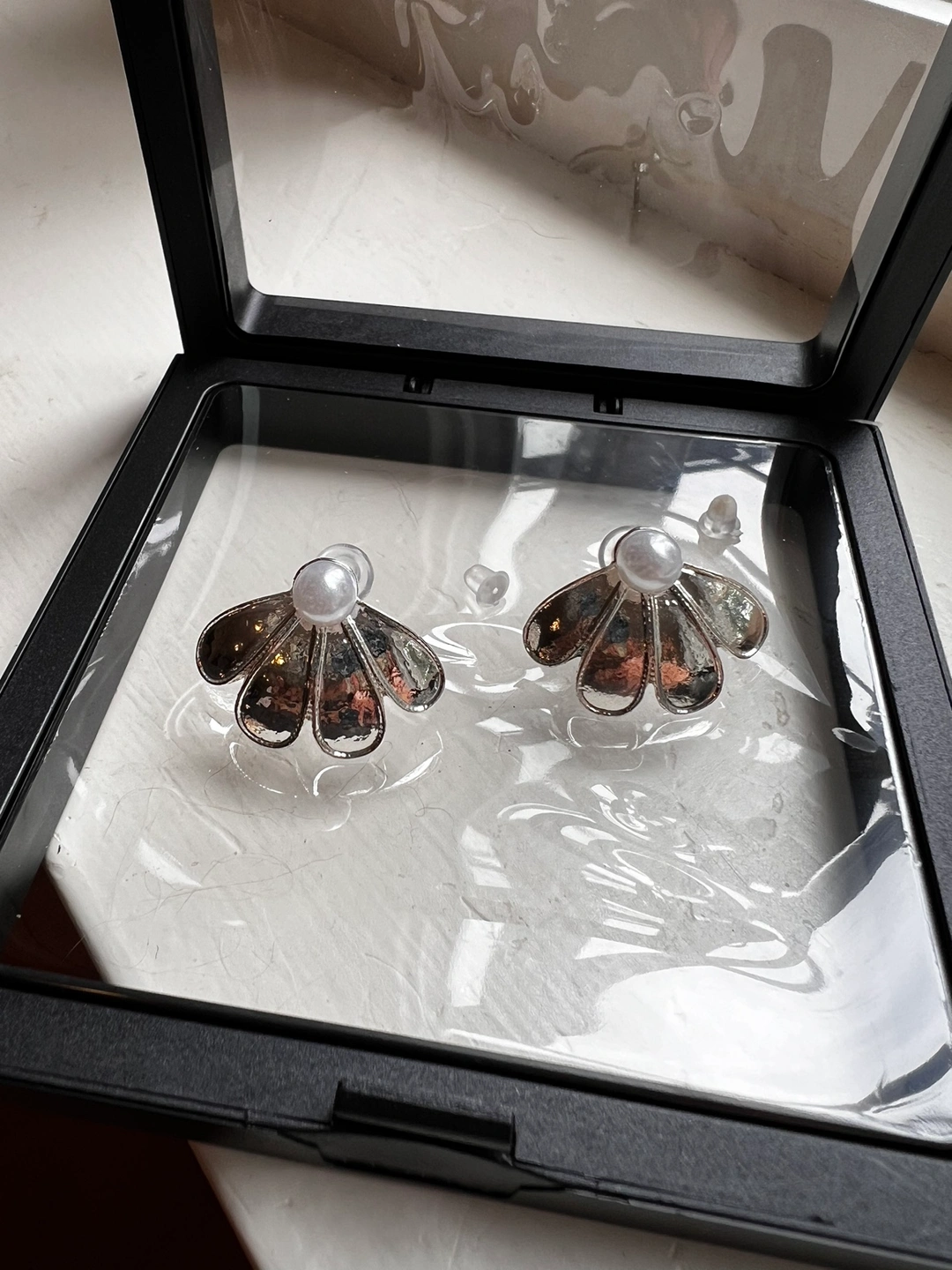 Silver plated daisy earrings with S925 needles. Never worn but the needles oxidized a bit as it’s silver. Can be cleaned. Meet up at Waterfront station on weekdays and Deep Cove on weekends.