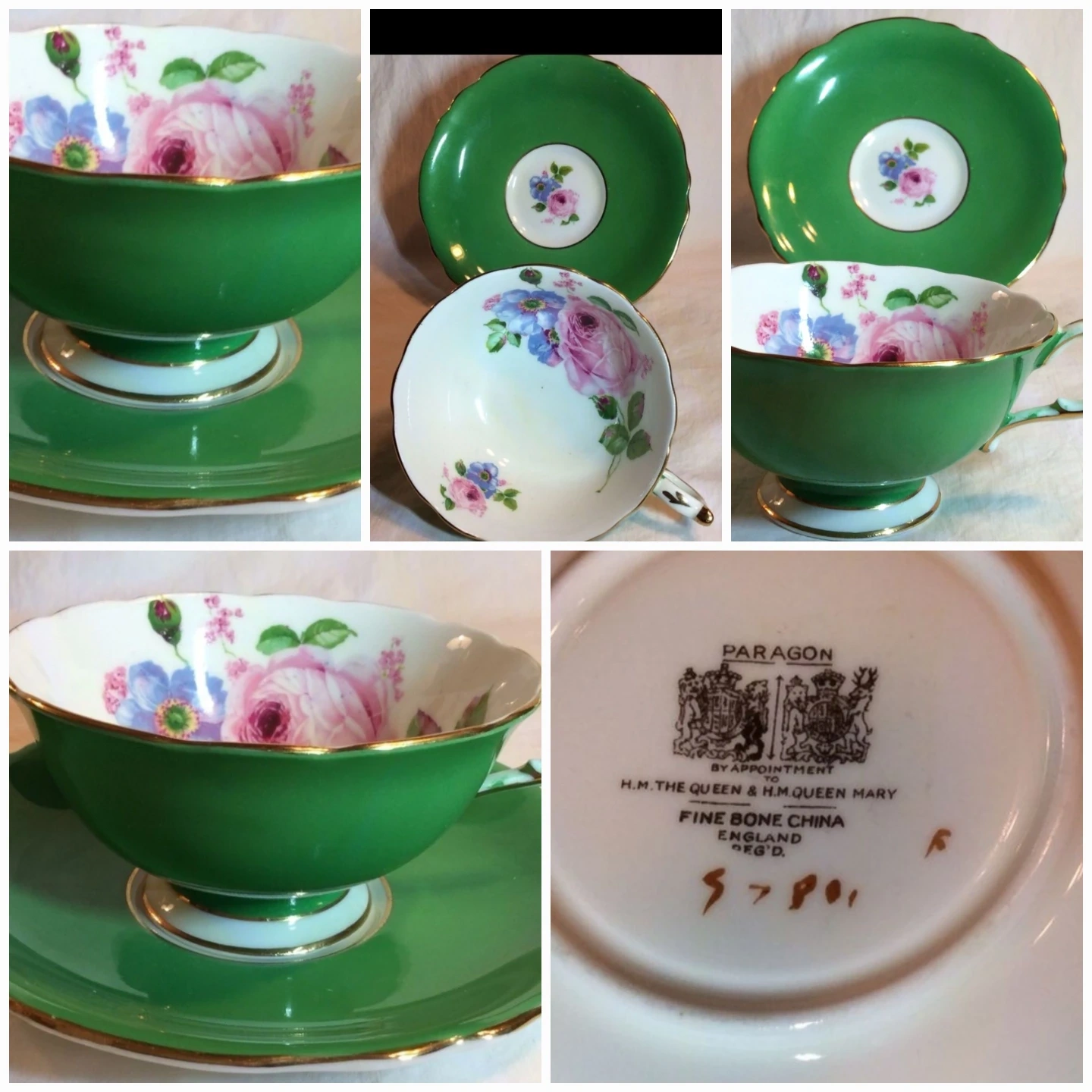 3 x Beautiful Double Warrant Paragon Teacup Sets , Selling Together 1 x Pale Blue and 1 x Light Peach with Cabbage Rose - These 2 sets have dry light spot of Crazing on the Saucers barely noticeable. 1 x Emerald Green with Cabbage Rose Double Warranted All in Excellent Condition, No Chips, Cracks or Fading of the Trim or Pattern and all Ping Real Nice. Asking $320.00 for 3 which is an amazing Deal! NOW REDUCED AND VERY FIRM $150.00. FIRM Please Don't Message for a lower price . Absolutely NO more REDUCTIONS! Pickup Clarkson Area Mississauga Via Enclosed Porch for Easy Viewing or I offer Delivery Willing to Ship at Buyers Accepting Cash or Etransfer Only Please