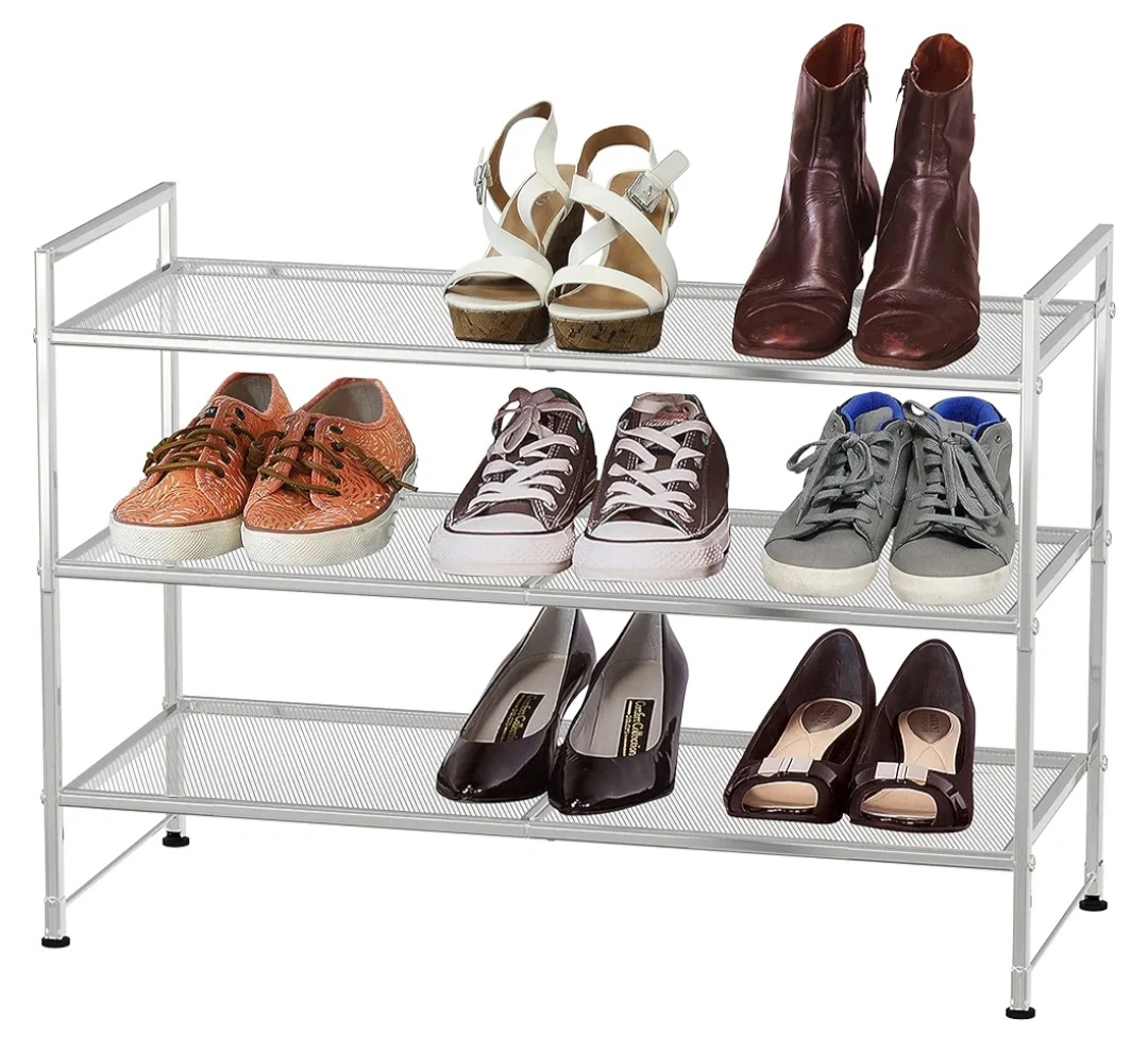 Here's a handy 3-tier metal shoe rack, perfect for keeping your entryway or closet organized! It's in good condition and ready to hold all your favourite footwear