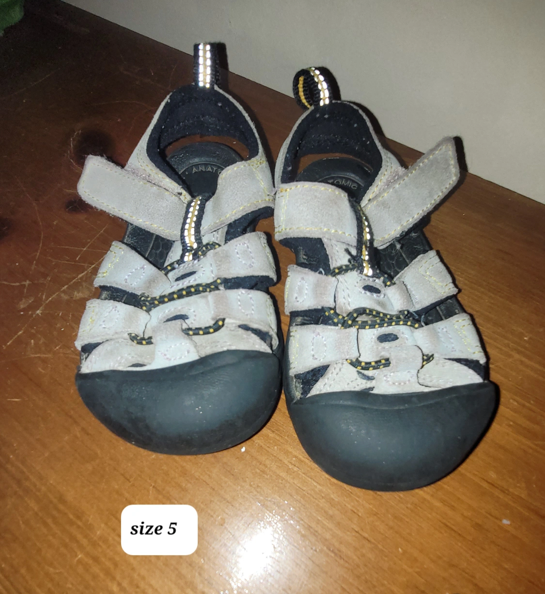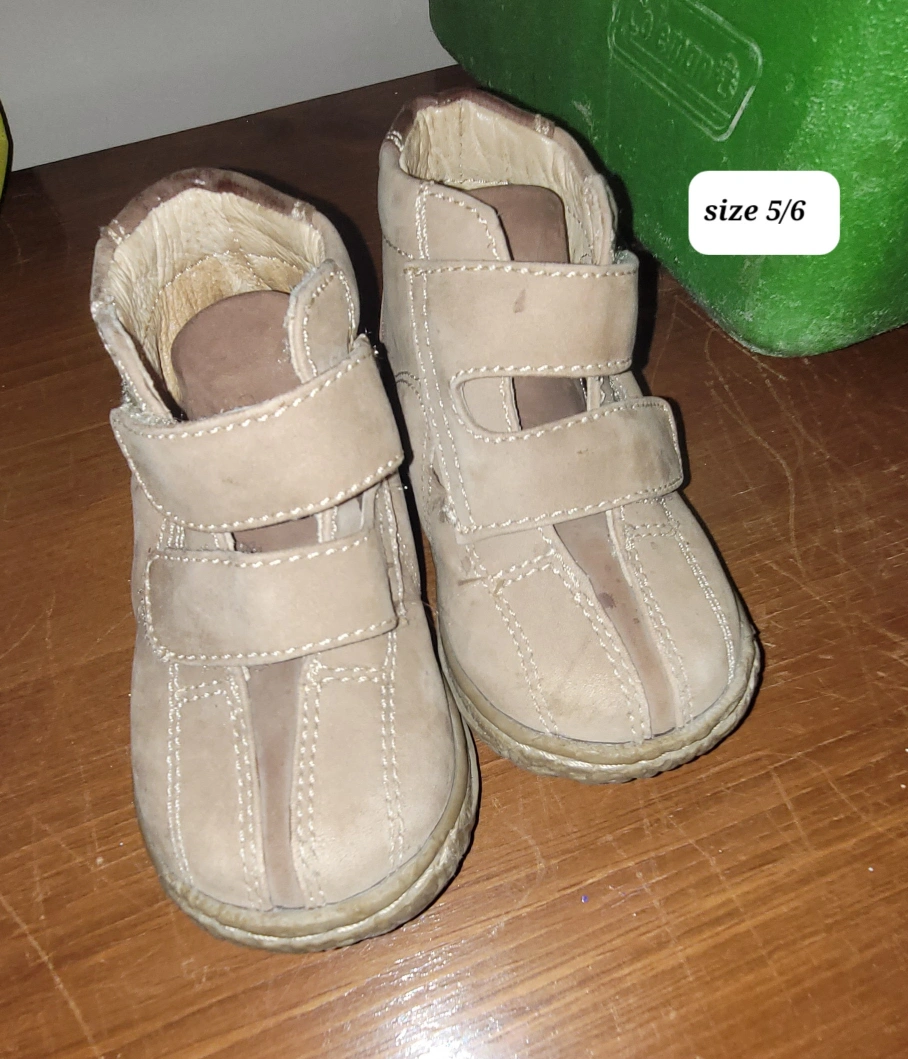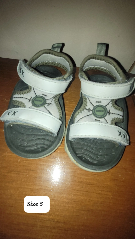 I have a variety of kids' sandals and boots available. Sizes range from 5 to 6. Brands include Maxx and Kiu Kiem. $5 each pai