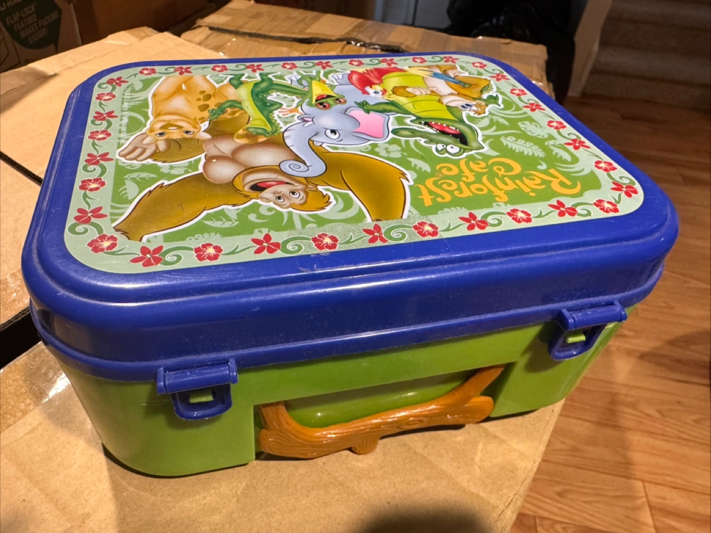 Selling a Rainforest Cafe lunch box! It's in good condition and has a fun design with all the rainforest animals. Perfect for kids or anyone who loves a bit of nostalgia. Hard case and very spacious.