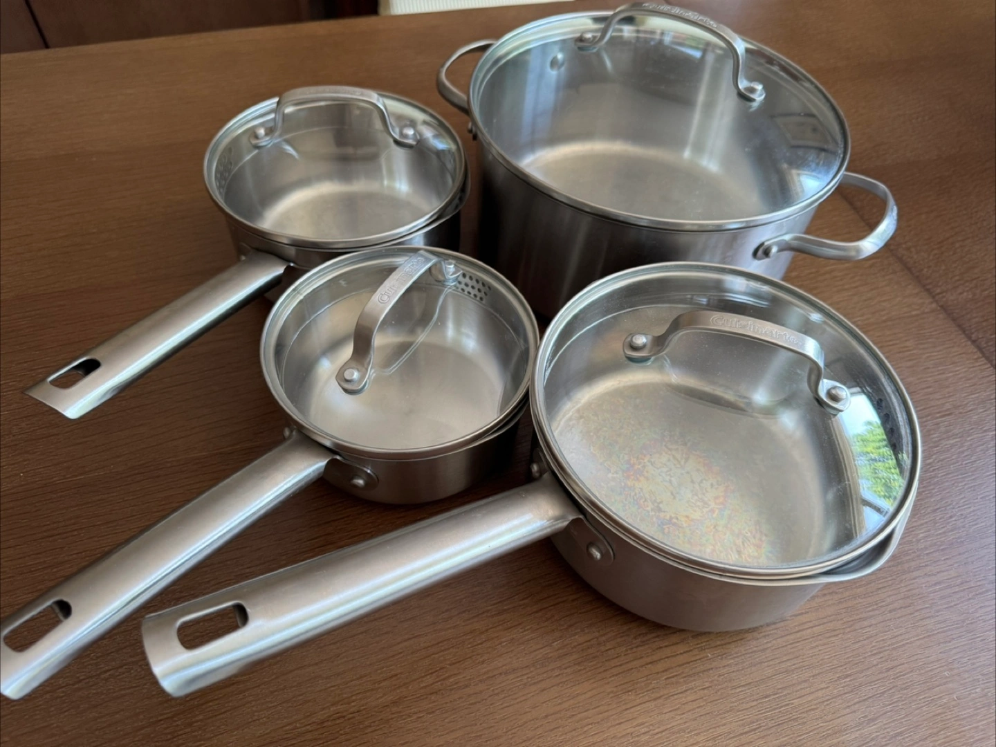 Barely used Cuisinart stainless steel 10-piece set — in like-new condition. Includes saucepans, sauté pan, large stockpot, skillets, and matching lids. High-quality tri-ply stainless steel, compatible with all stovetops including induction. 🚭 Smoke-free home ❤️Price firm