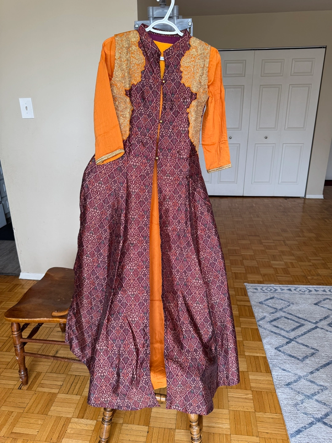 I'm selling a beautiful Anarkali dress in orange and brown! It features lovely embroidery and a unique design. Perfect for a special occasion or adding a touch of elegance to your wardrobe.Pickup near Dixie and bloor
