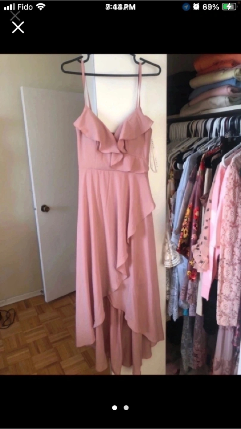 I also have the hanger bag it came with. Fits sizes 2-6. ๐ธ A stunning dusty rose dress. Features delicate straps and a flattering ruffle detail. A great dress for a wedding event, where you're sure to look wonderful