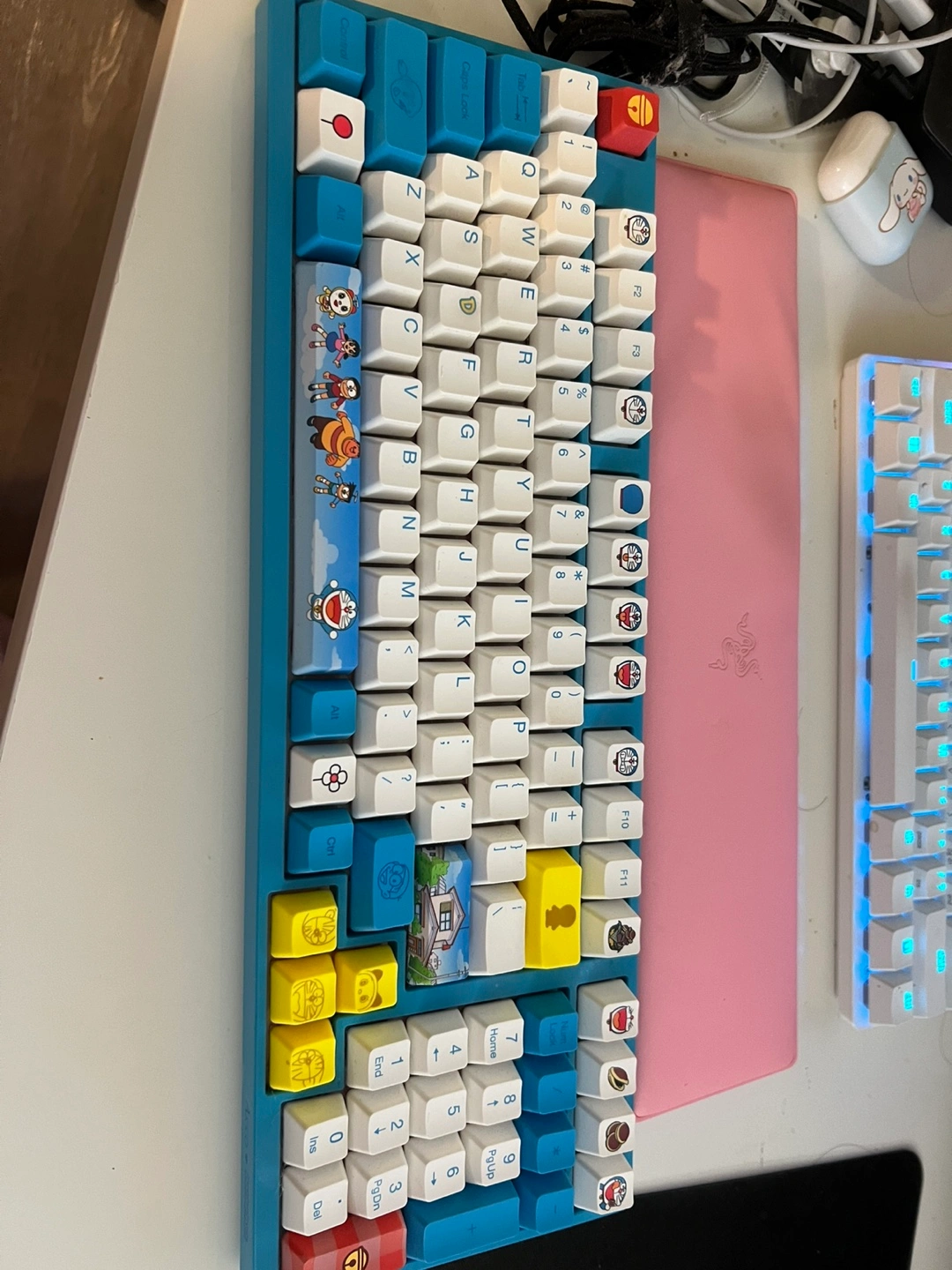 Selling a AKKO mechanical keyboard with a fun Doraemon theme! The keycaps feature various Doraemon characters and designs. linear Switch.