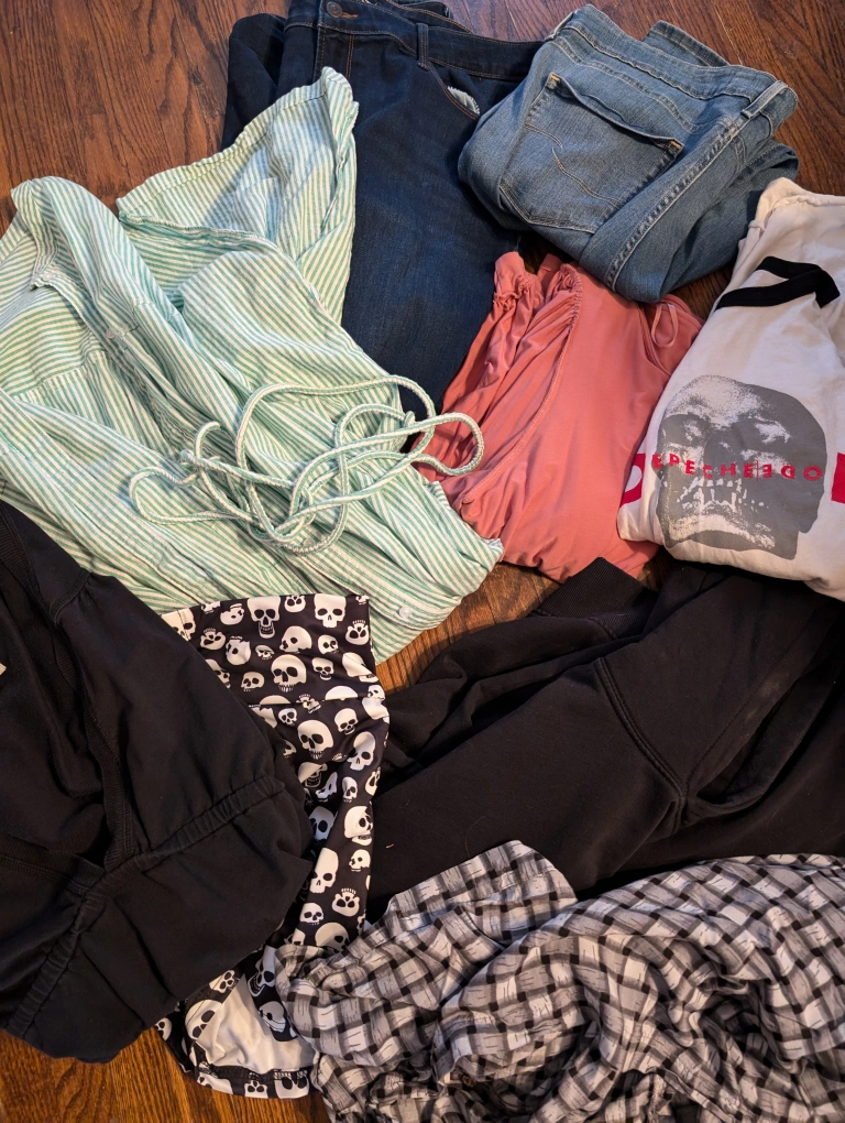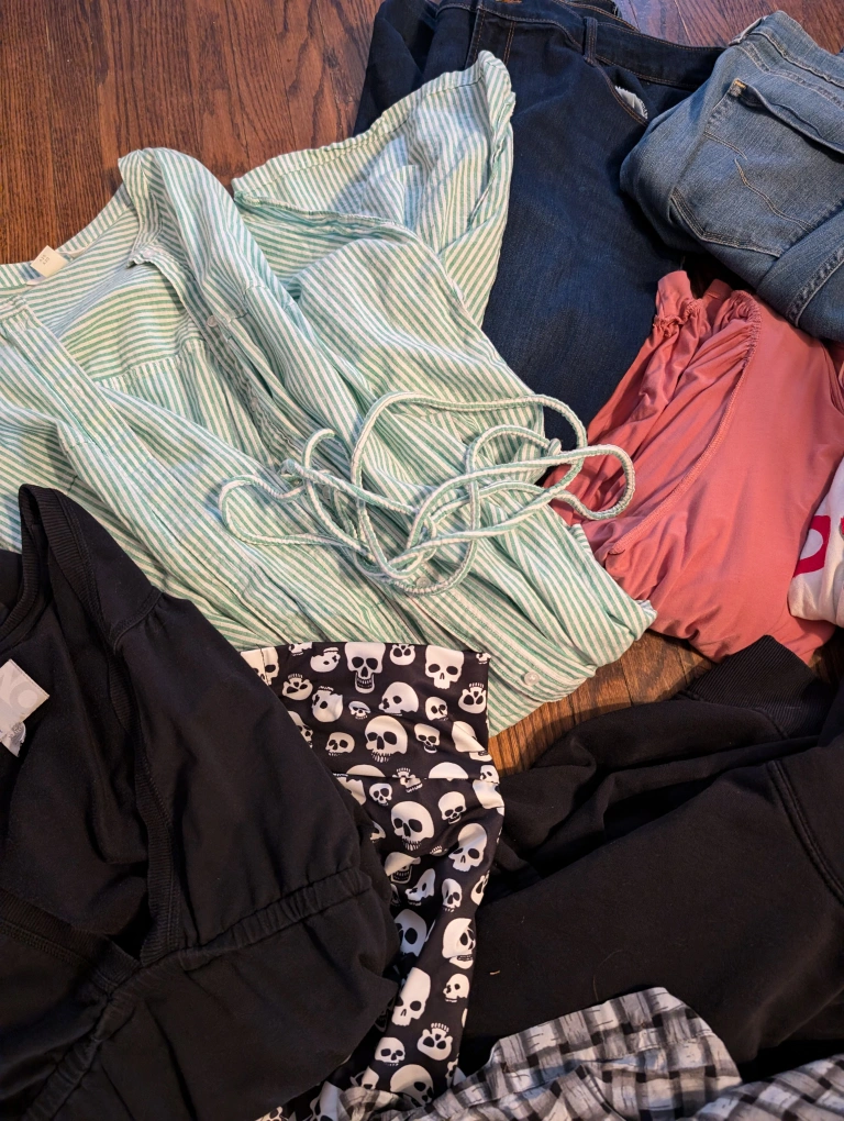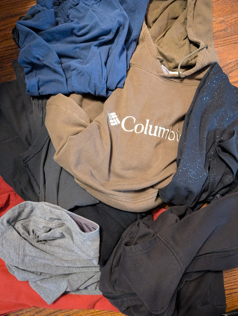 Very large lot, 2 large garbage bags mixed lot of clothing items. There are various styles, colours Size XL to XXL Jeans, jean jackets, shirts, dresses, rompers, hoodies, t shirts, leggings, athletic wear, swim suits, tanks, dresses labels: Old Navy, Columbia, Joe Fresh, George, Ar'tyc Cash only, no etransfers