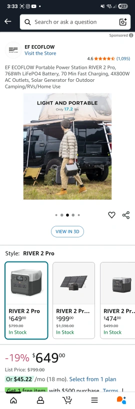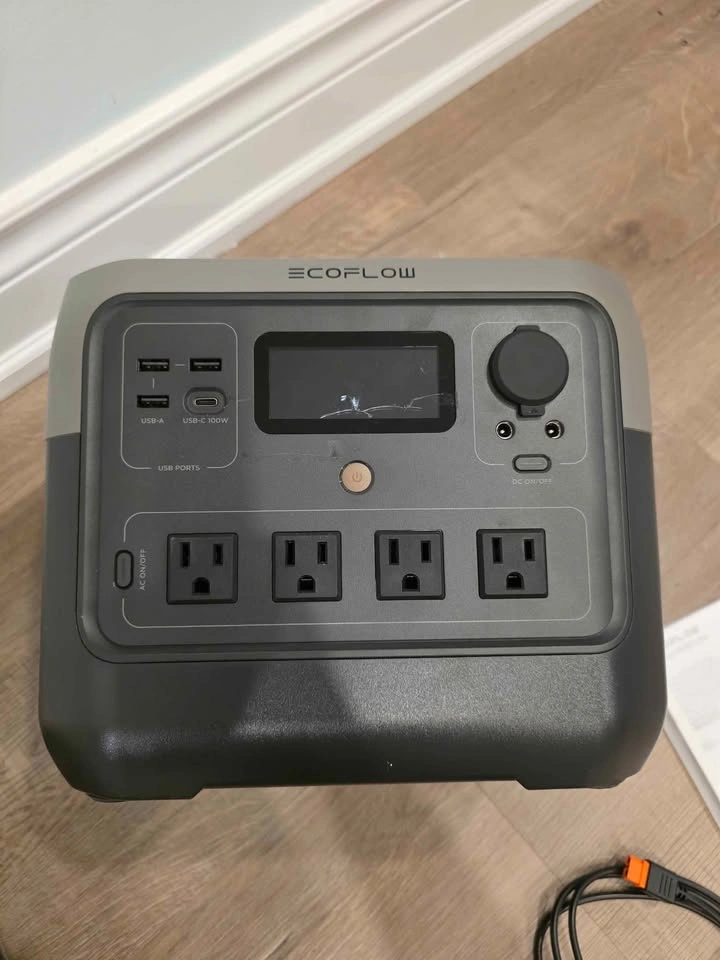High-capacity portable power station with 768Wh LiFePO4 battery, 800W output (surge 1600W), and 70-minute fast charging. Includes 4x AC outlets, USB-A/C ports, and DC car port – perfect for camping, RVs, power outages, or off-grid setups. Compact and lightweight (only 17.2 lbs). NOTE: The screen is cracked (see photos), but the unit powers on and works fine. Great deal for someone who doesn’t mind cosmetic damage Charges, turns on, and displays output Retails for $649+tax on Amazon Specs: 768Wh LiFePO4 battery 800W continuous / 1600W surge output Charges to 100% in just 70 mins 3000+ charge cycles for long life Multiple output ports (USB-A, USB-C 100W, AC, DC)