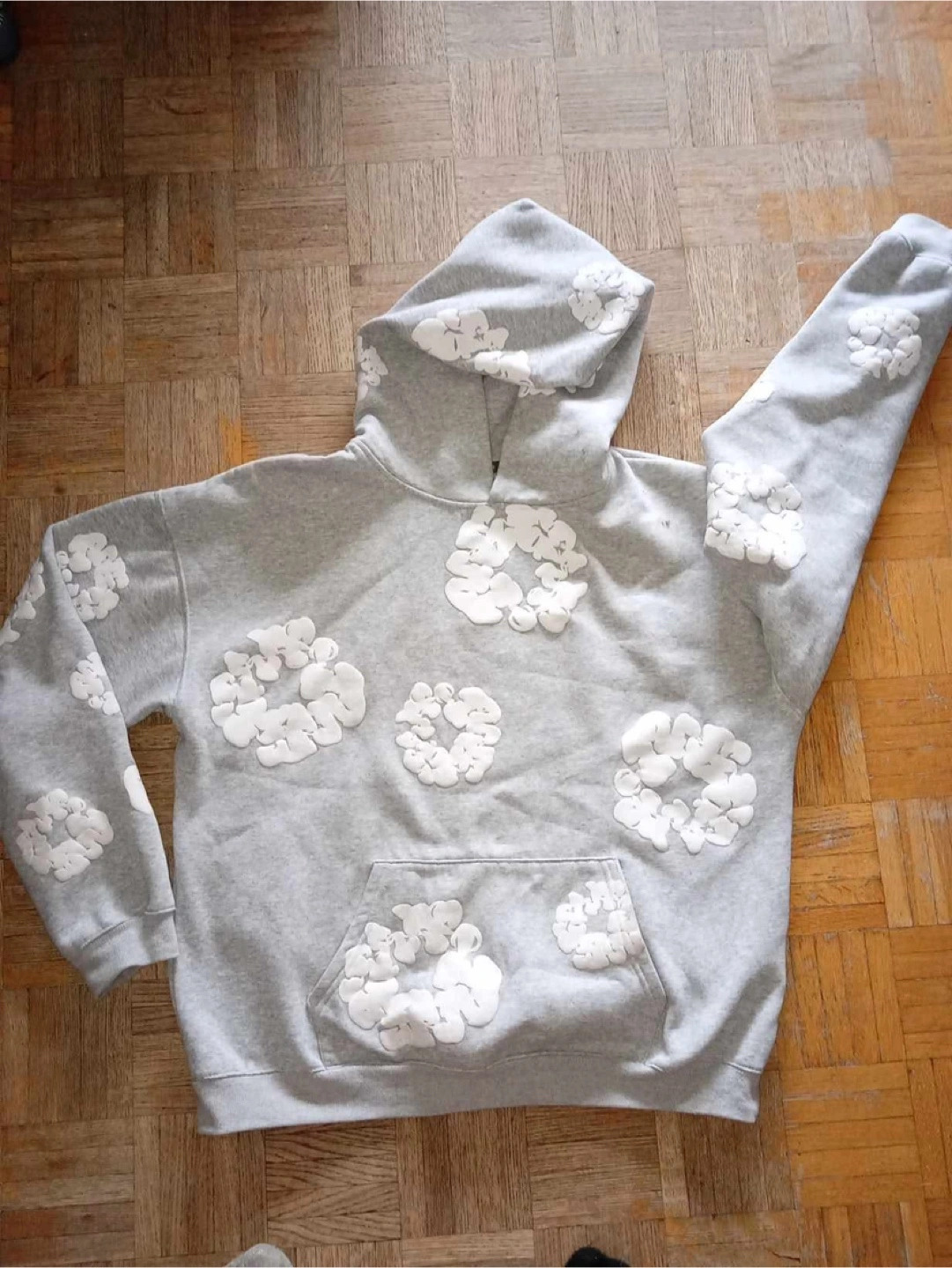 Selling denim tear hoodie! It's a light grey colour with a unique floral design. Super comfy and in great condition