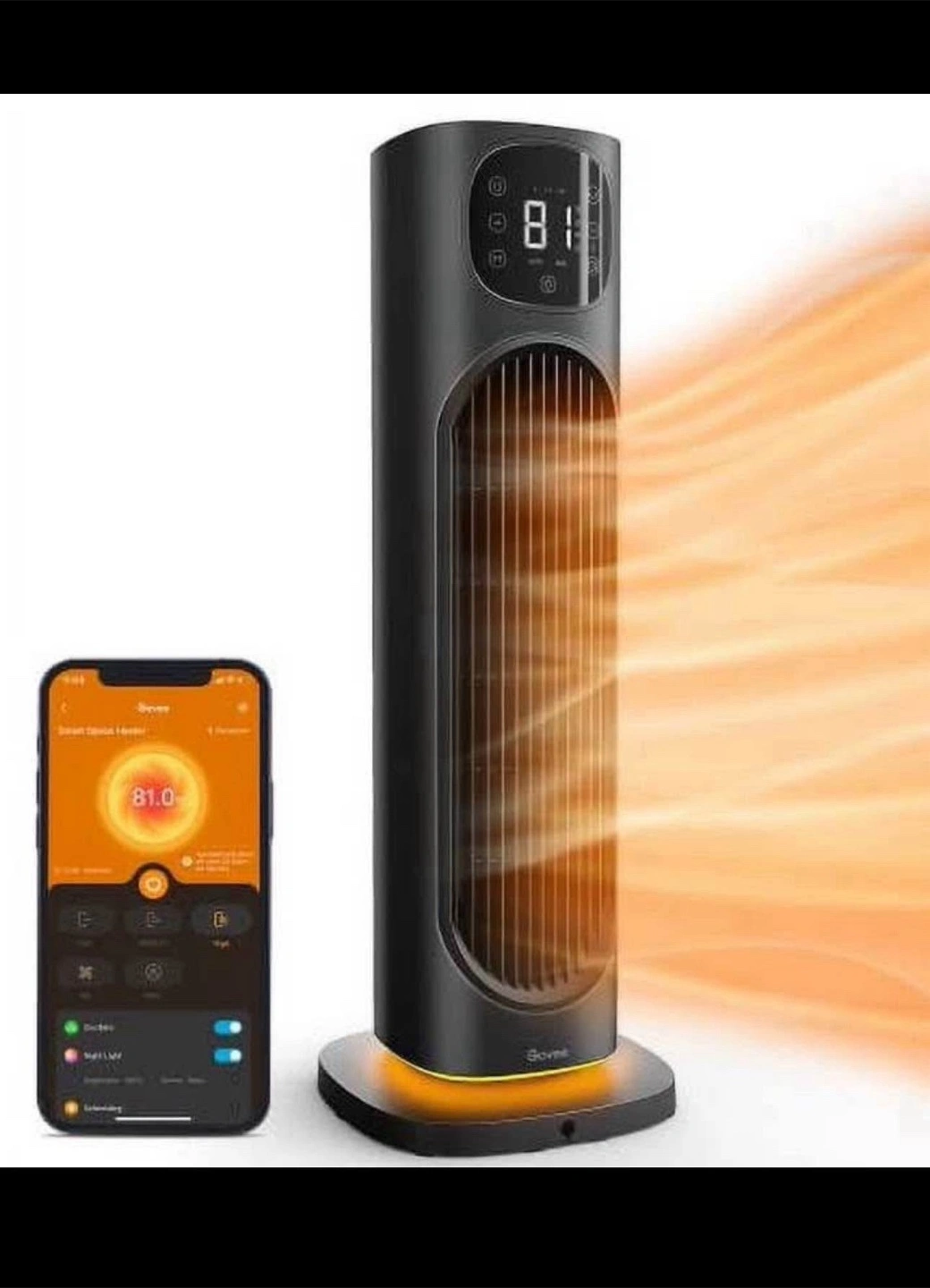 Pickup - Oshawa Govee Smart Space Heater for Indoor Use, 1500W Ceramic Tower Heater with Thermostat APP&Voice Control, Quiet Portable Electric Heater with RGB Night Light for Large Rooms, Bedroom, Off