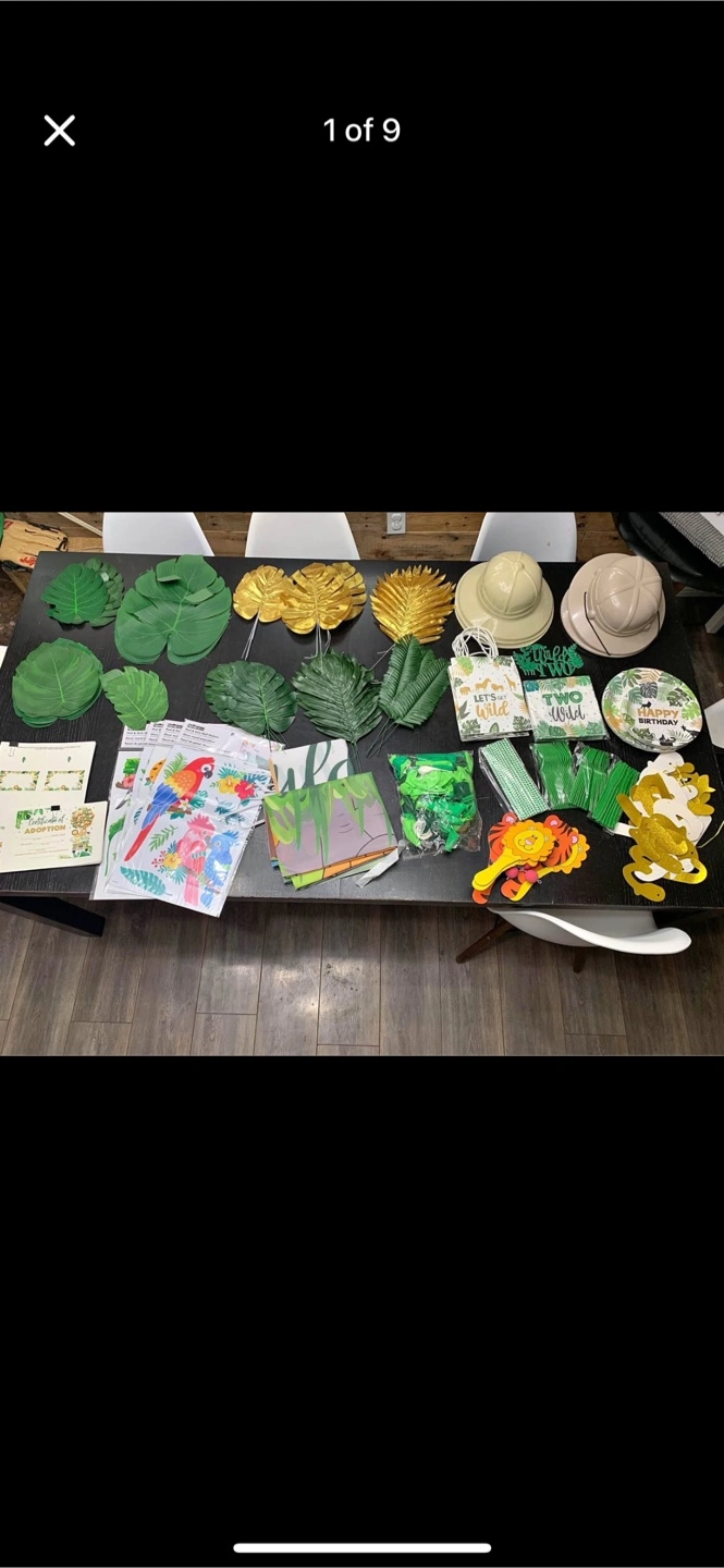 Selling a bunch of jungle-themed birthday party decorations! Perfect for a wild two-year-old's celebration or any safari-themed event. Includes artificial leaves, animal print decorations, safari hats, and more! Great summer fun idea! Pickup only. Closest intersection is Jane St and Eglinton Ave