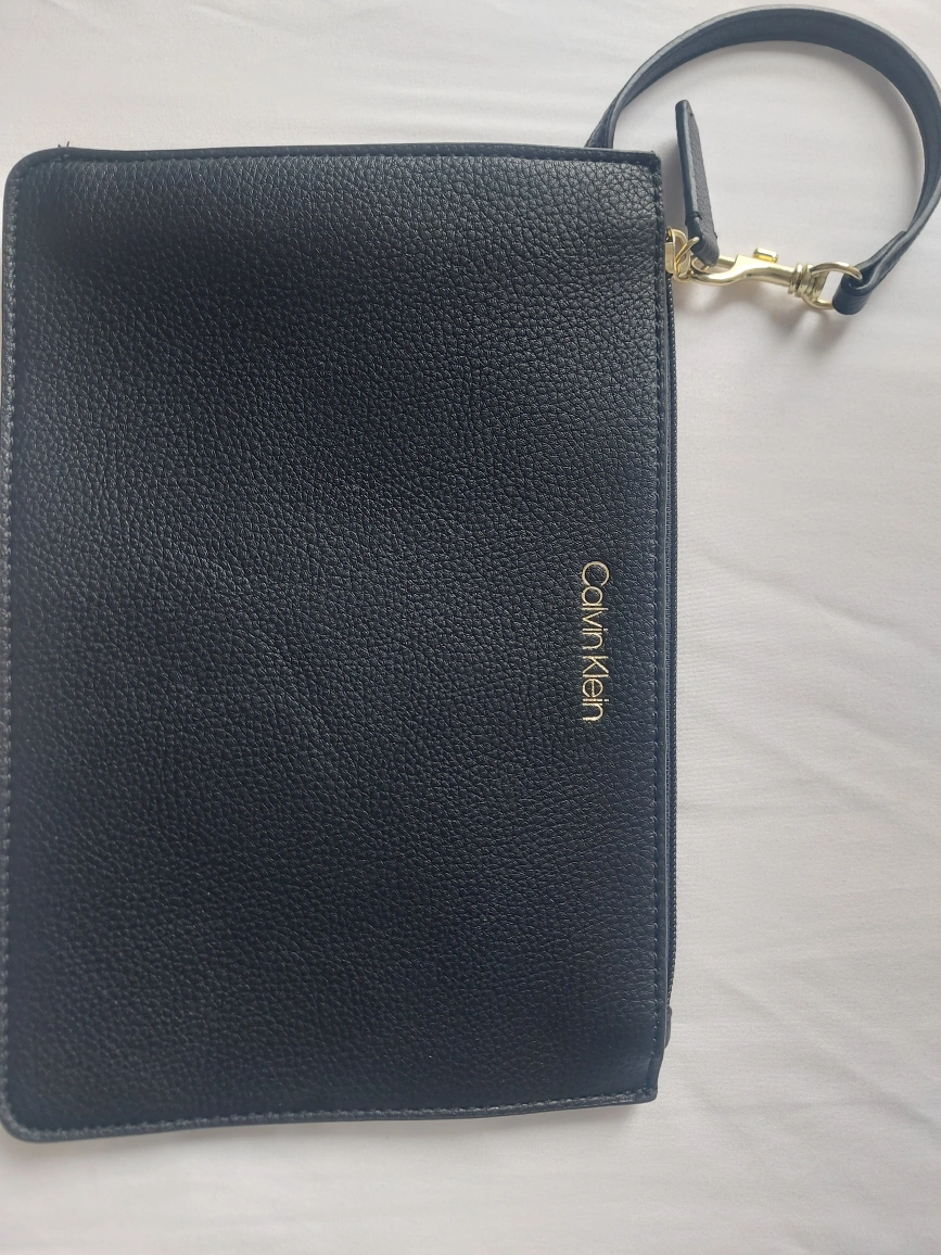 Selling a Calvin Klein wristlet in black. It's in great condition and features a convenient wrist strap. Perfect for carrying your essentials!