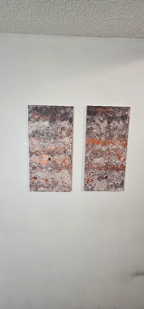 Selling an abstract art pieces. They feature a blend of colours, including copper, white, and darker shades. Perfect for adding a modern touch to any room!