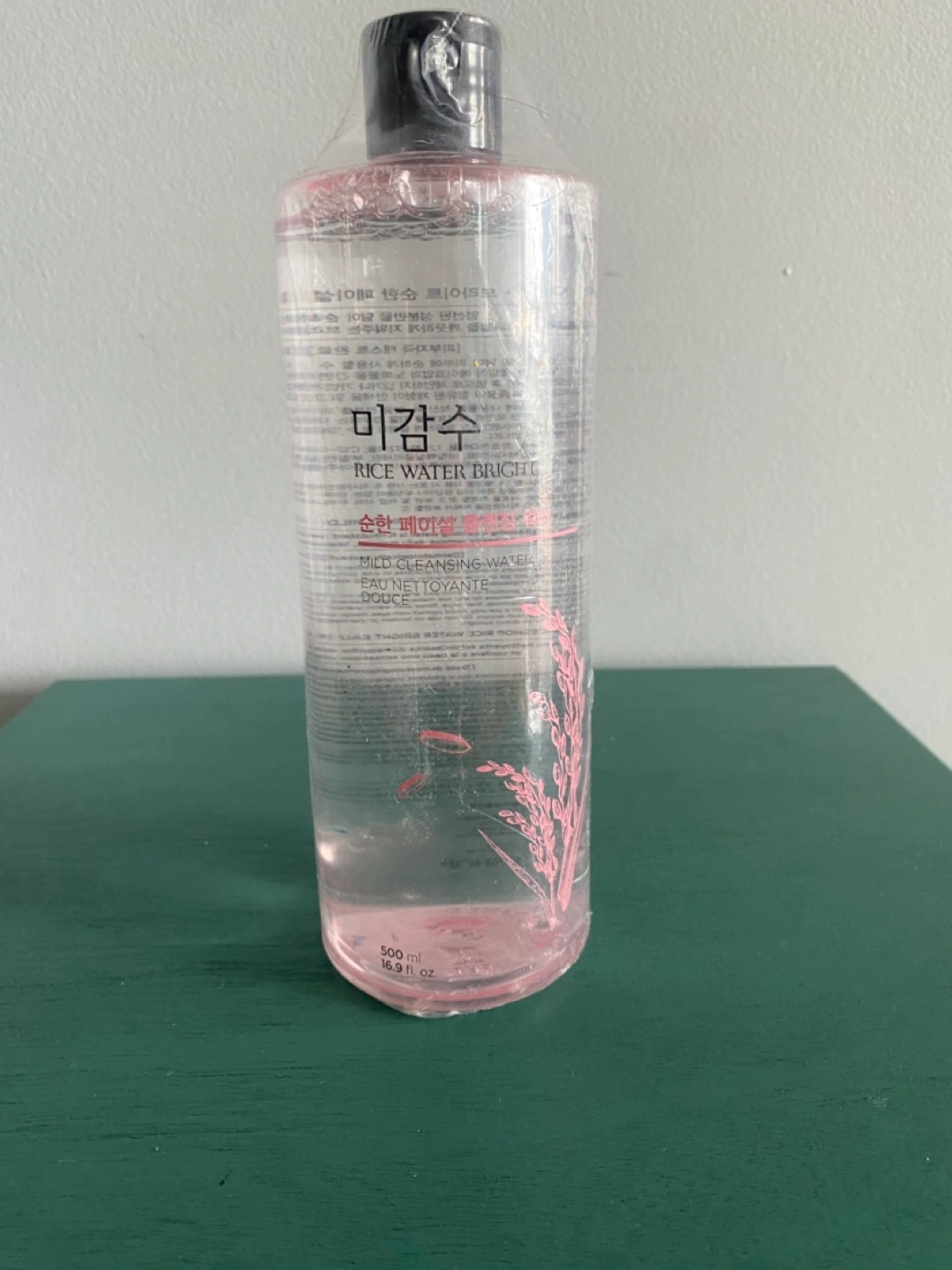 Selling a new large bottle of Rice Water Bright mild cleansing water! It's a gentle facial cleanser that's great for removing makeup and impurities. The bottle contains 500ml/16.9 fl oz of product. Perfect for a refreshing cleanse!