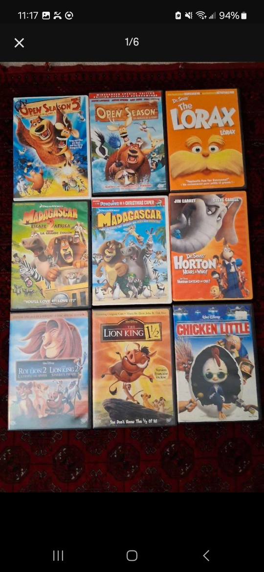 Selling a collection of kids DVDs. Includes Ice Age: The Meltdown, Dora Puppy Power!, The Lorax, Open Season 3, Madagascar and more! Great for family movie night