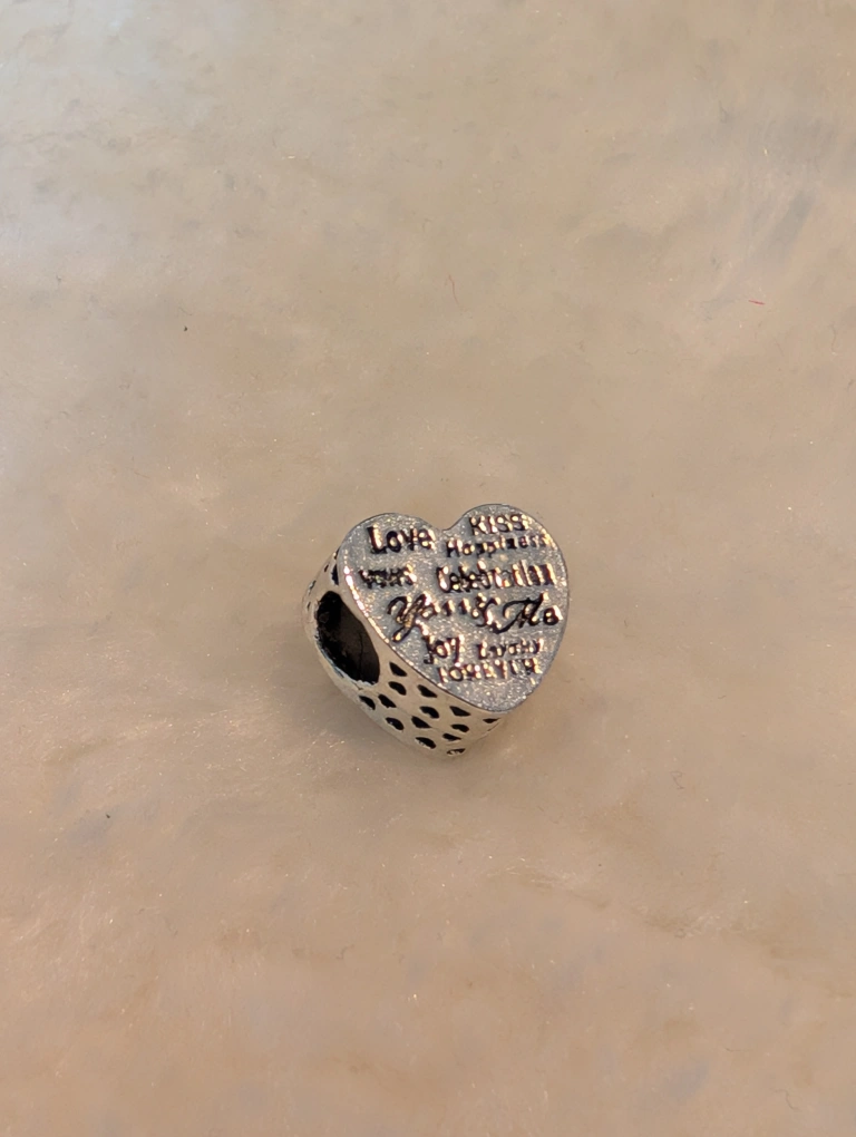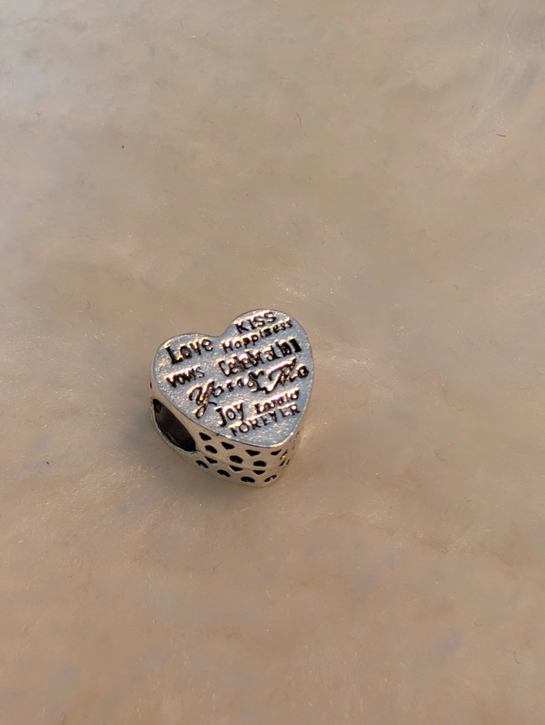 Cute charm with the words Love, Happiness, and Joy on it! It's in great condition and ready to add some sparkle to your bracelet or necklace