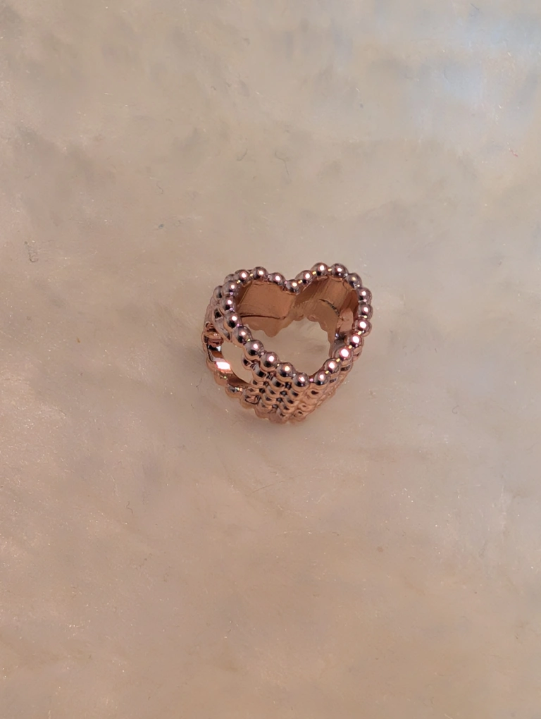This is a cute heart rose gold tone charm. It has a beaded design.