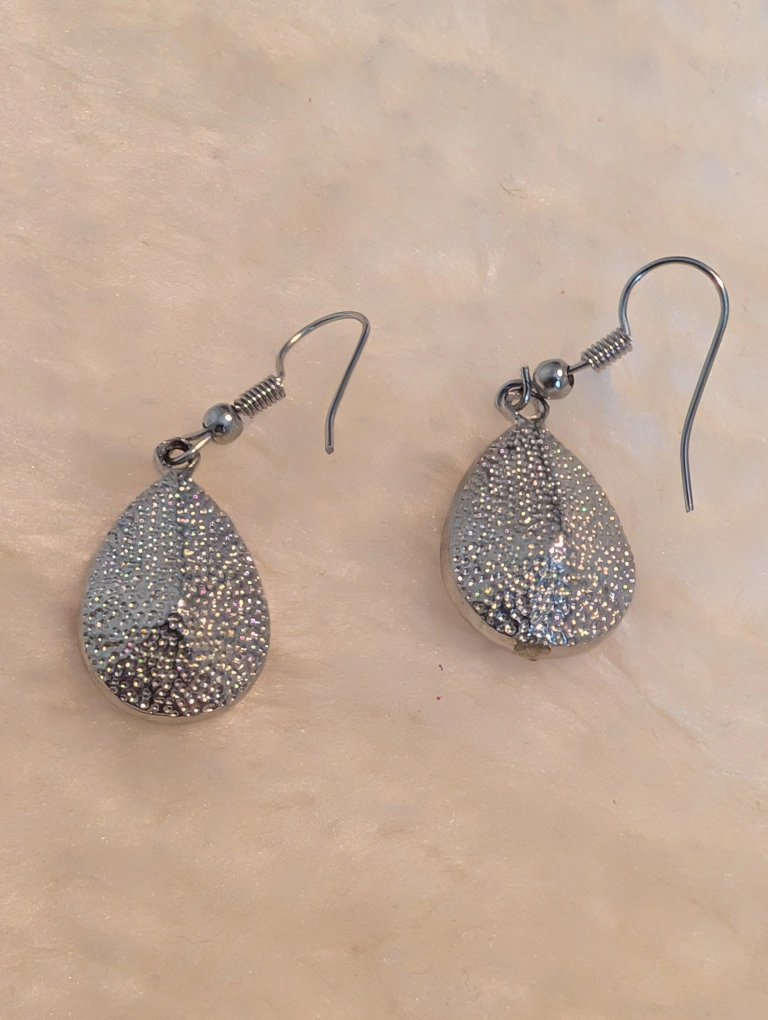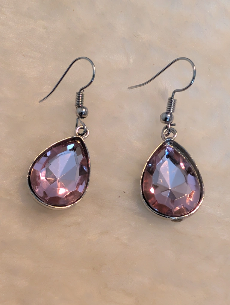 Cute pair of drop earrings with a pink gem-like stone set in a silver-tone metal. They are in New condition and ready to add a pop of colour to your outfit!