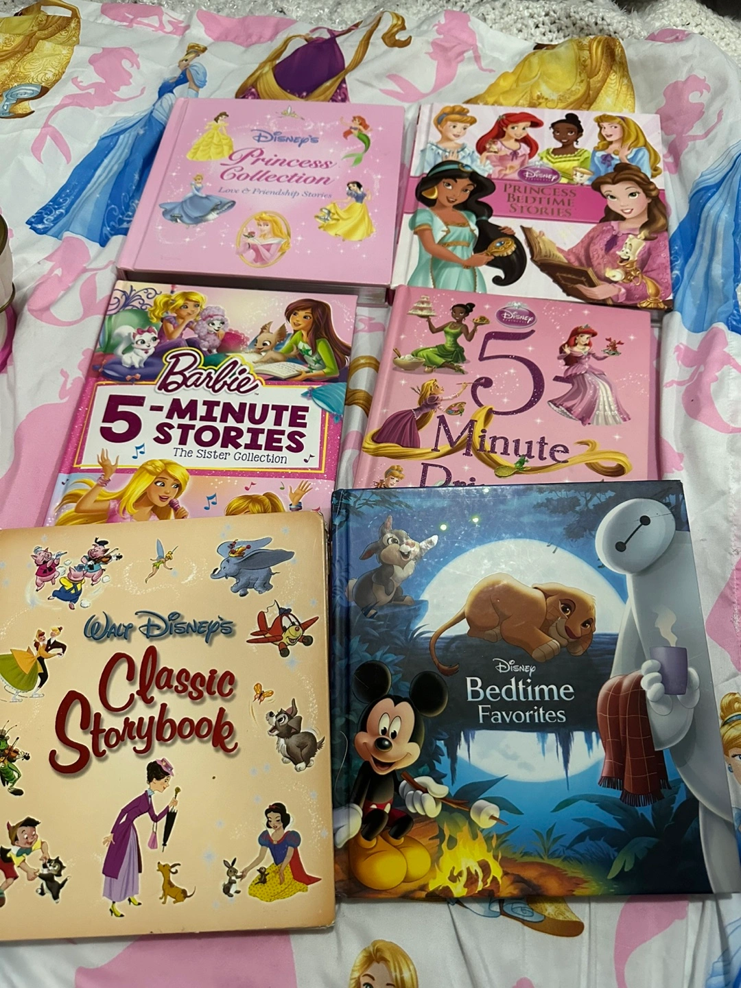 Selling a collection of Disney storybooks for kids! Includes: - Disney's Princess Collection: Love & Friendship Stories - Disney Princess Bedtime Stories - Barbie 5-Minute Stories: The Sister Collection - Disney 5 Minute Stories - Walt Disney's Classic Storybook - Disney Bedtime Favorites