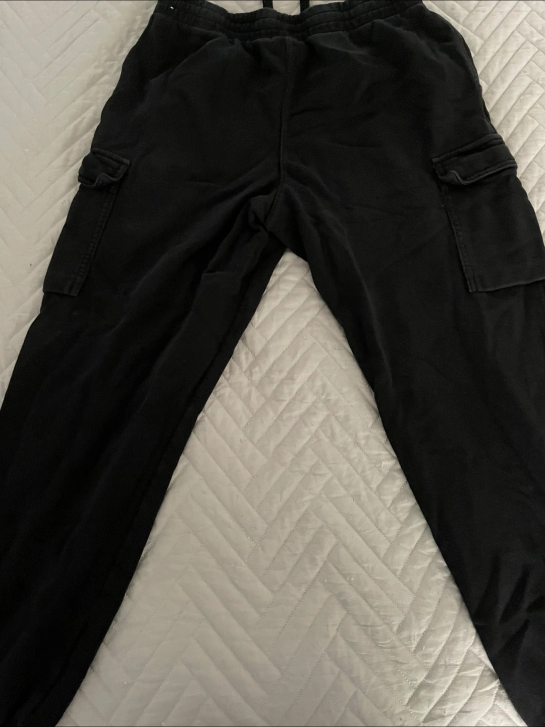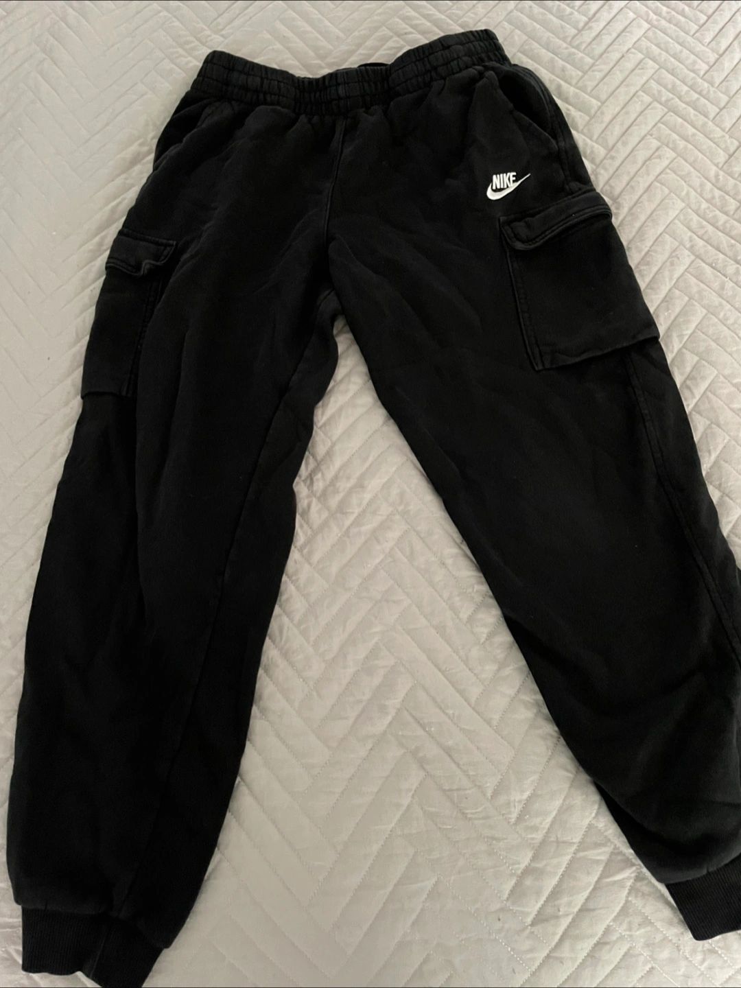 Selling a pair of black Nike cargo sweatpants! They're super comfy and have a relaxed fit. Perfect for lounging around or running errands