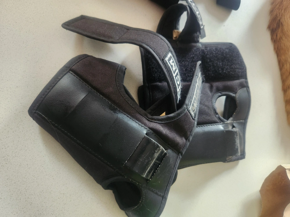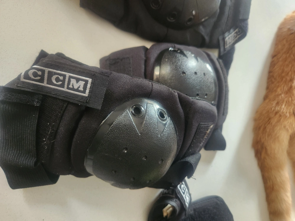Seldom-used men's knee pads, elbow pads and wrist pads for inline skating, rollerblading and skateboarding. Cleaned and still smells new.