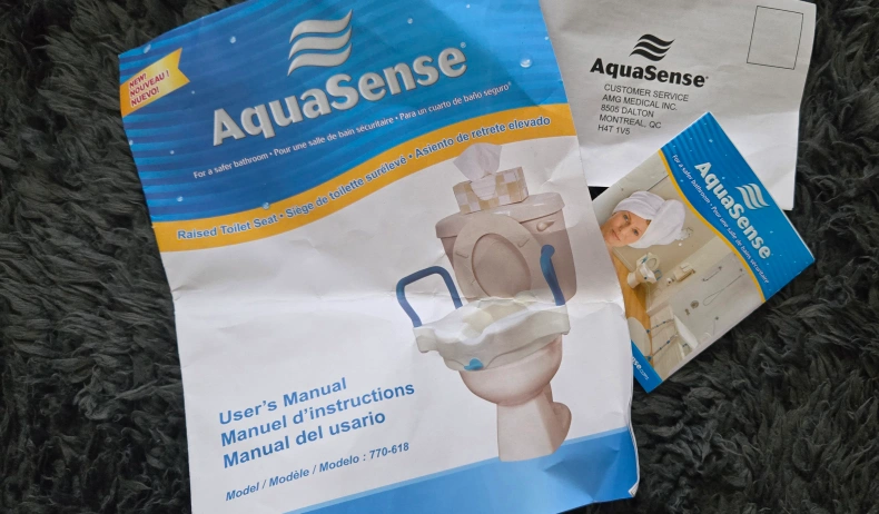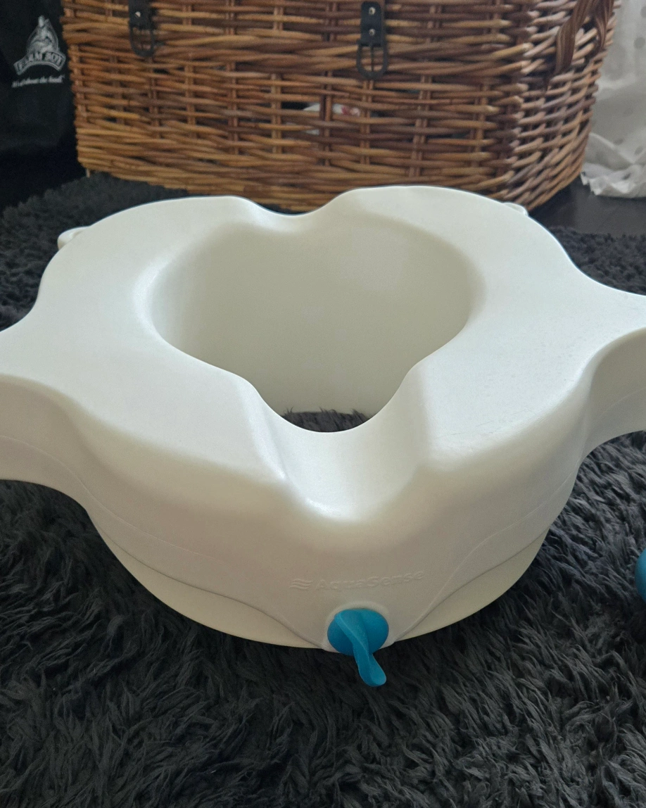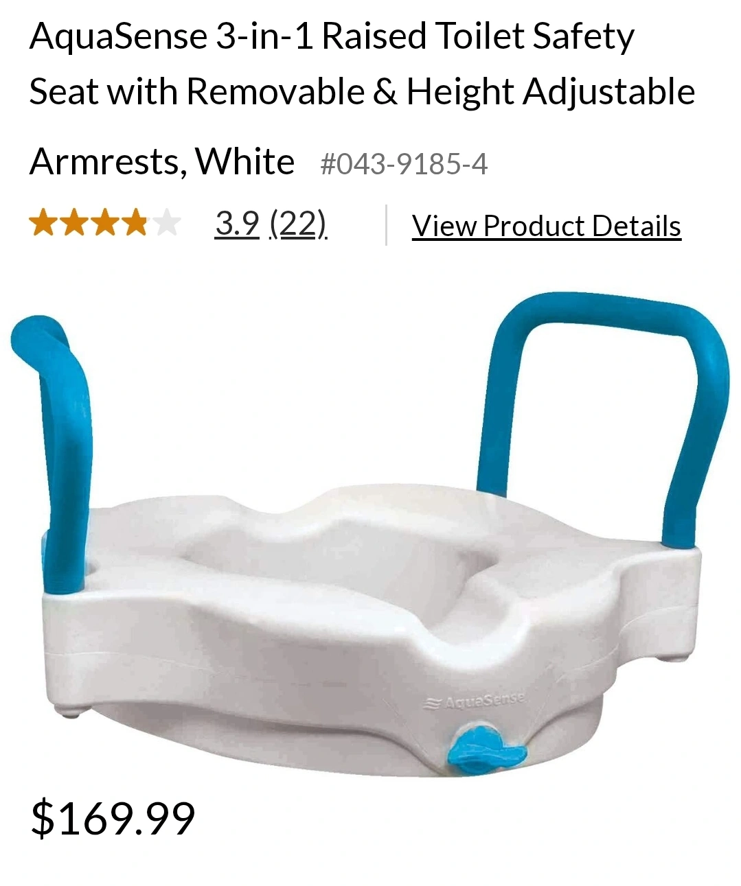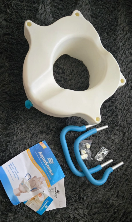 Selling an AquaSense 3-in-1 Raised Toilet Safety Seat with Removable & Height Adjustable Armrests in blue. It comes with the user manual and all the components shown in the pictures. Retails for $169.99!