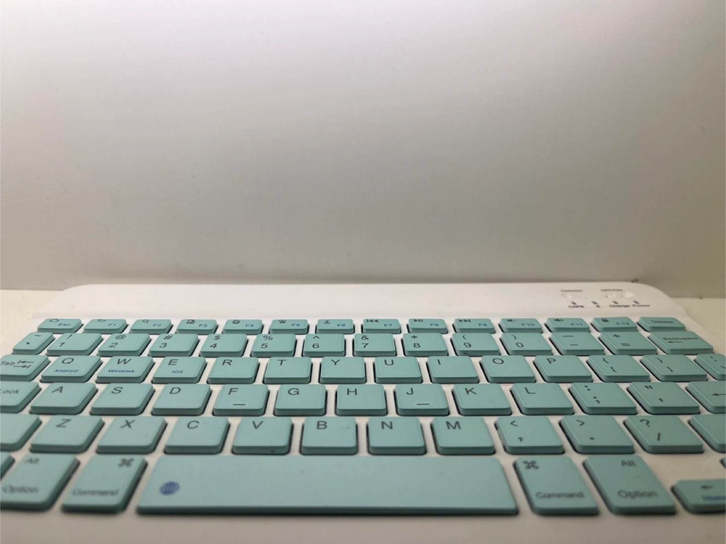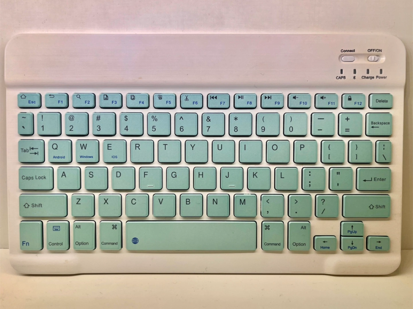 Selling a wireless keyboard in a nice white and blue color scheme. Perfect for tablets or any device needing a compact keyboard. *does not come with charging wire*