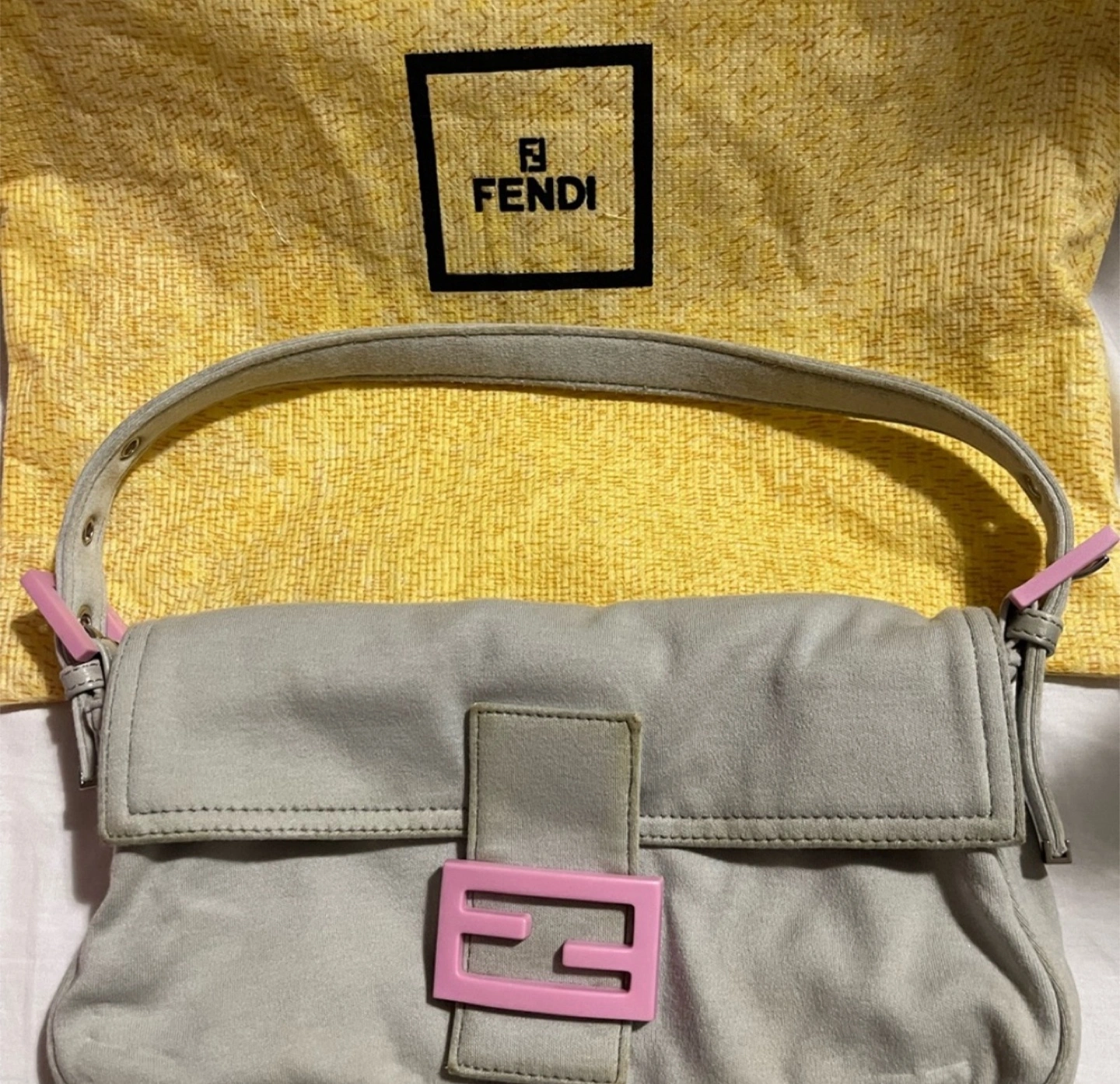 Selling a cute Fendi Baguette bag! It's a stylish grey colour with fun pink accents. The bag shows some signs of wear but still has lots of life left. Comes with the original Fendi dust bag.