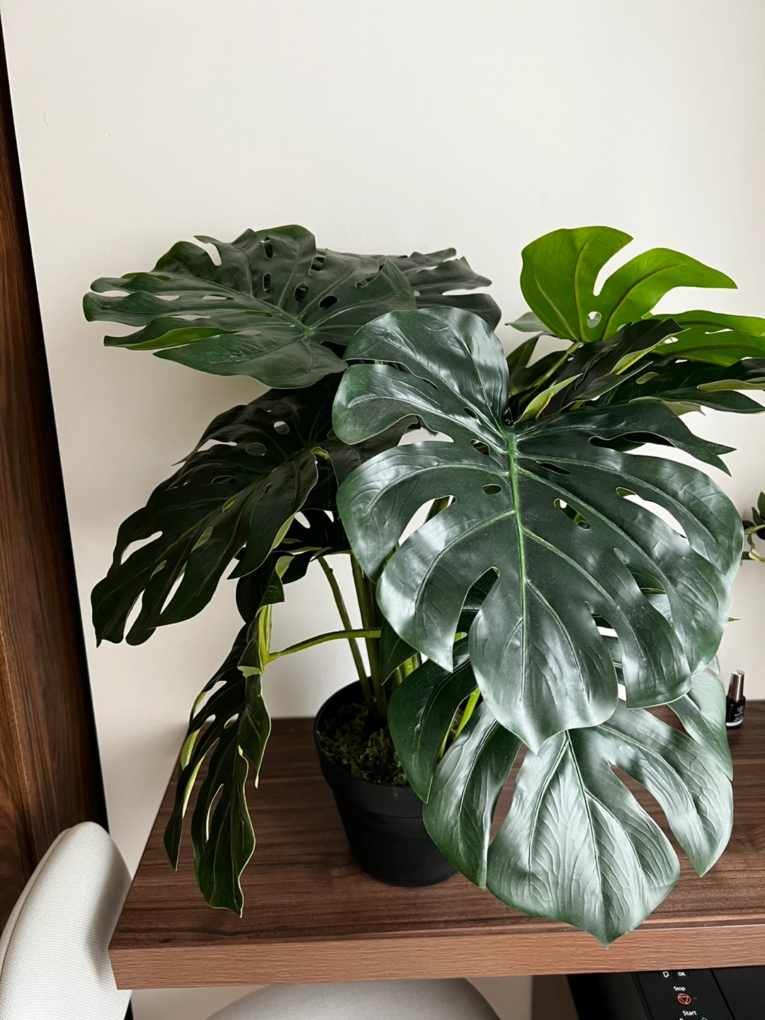 Selling a monstera plant! It's in great condition and would look lovely in any room. The leaves are a beautiful, deep green and it comes in a black pot.